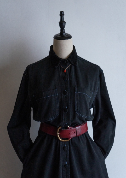 90's Blue Stitch Black Over dye Denim Shirts Dress