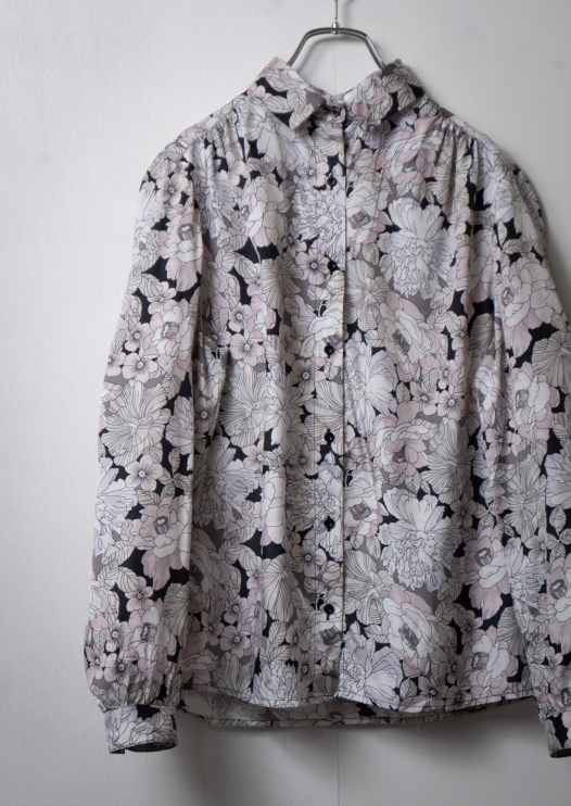 90's France Rose Pattern Charcoal Gray Blouse