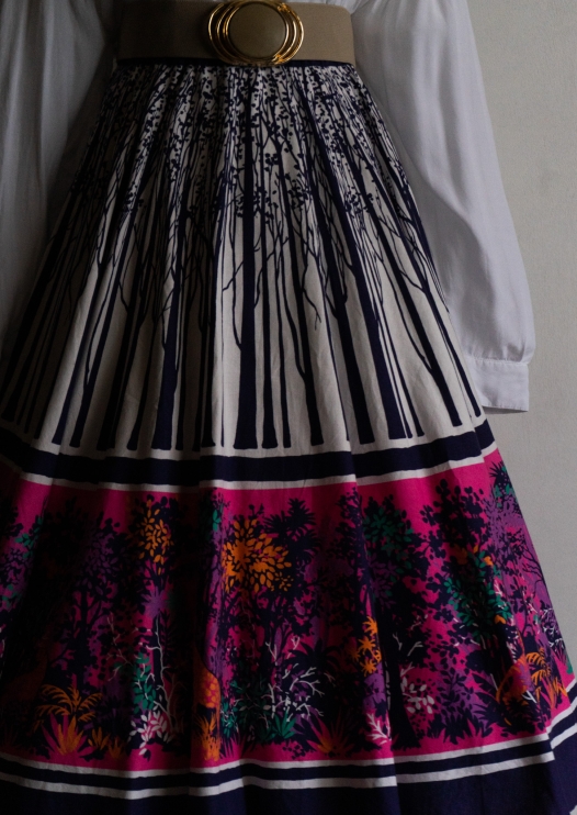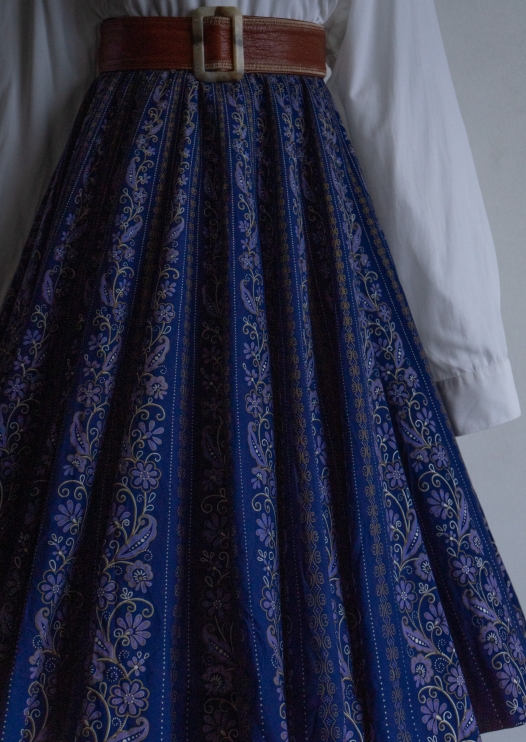 90's Botanical Stripe Pattern Navy Tyrol Skirt