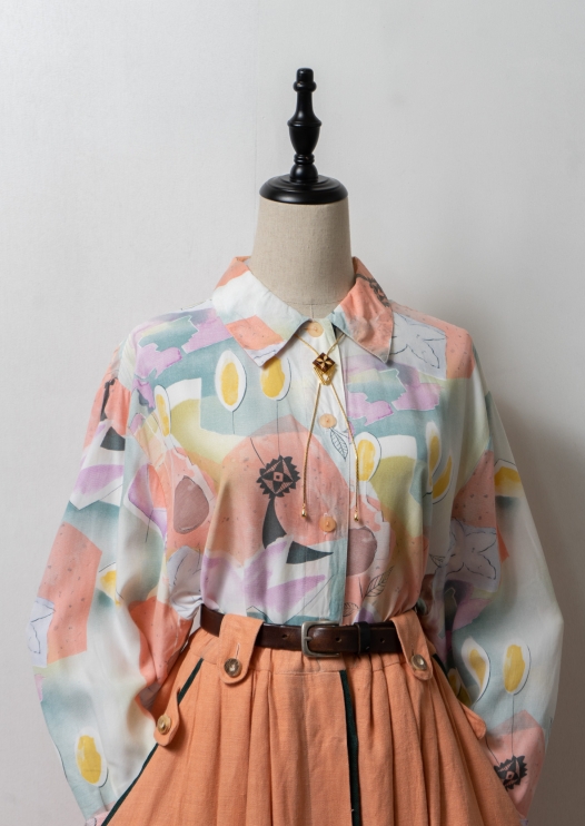90's Art Pattern Pale Color Blouse