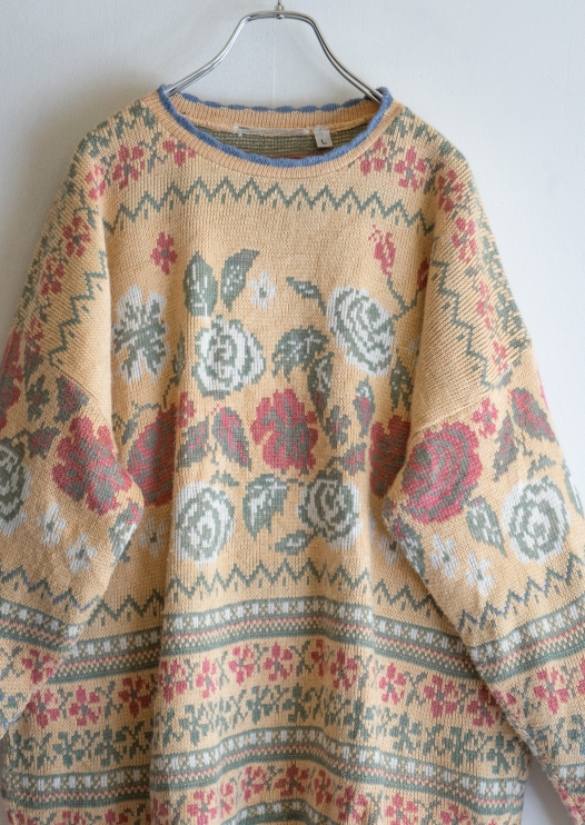 80~90's Flower × Nordic Pattern Smoky Yellow Sweater