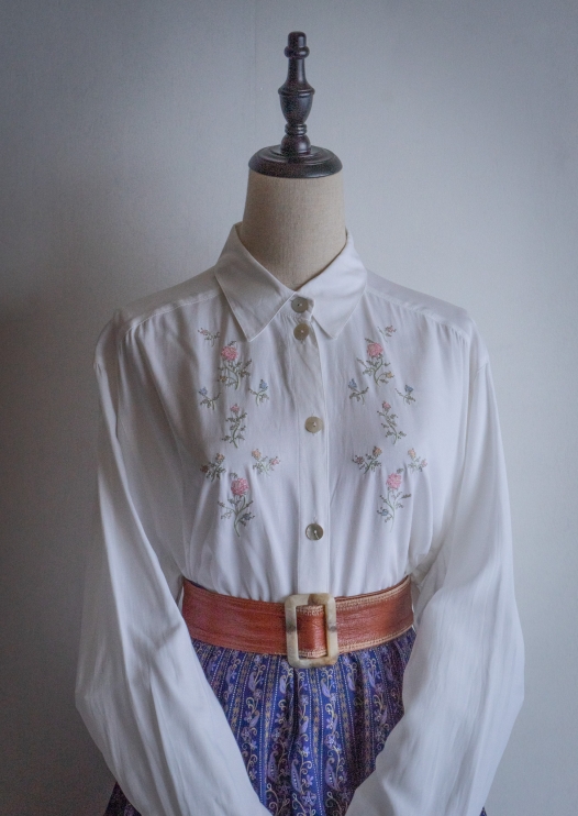 90's Flower Cross Stitch White Blouse