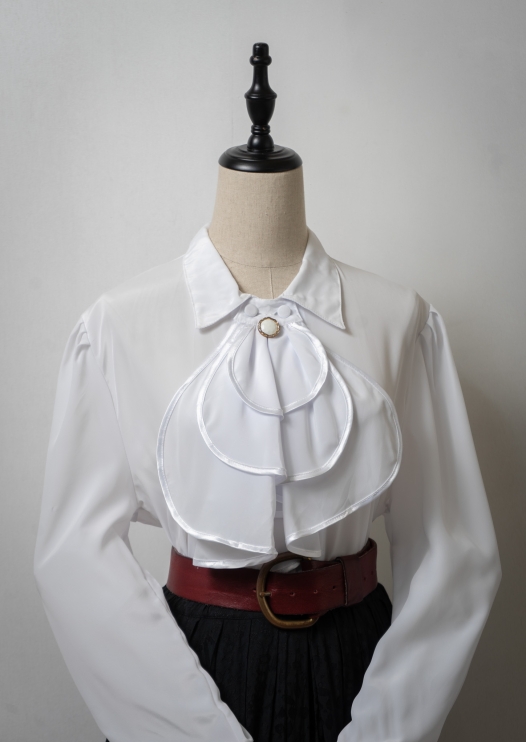 90's Jabot Collar White Blouse