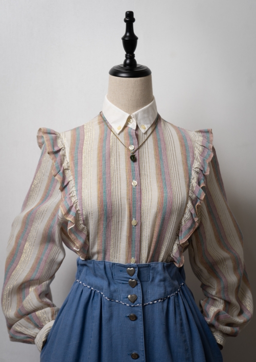 70's Pleated Frill Design Blouse