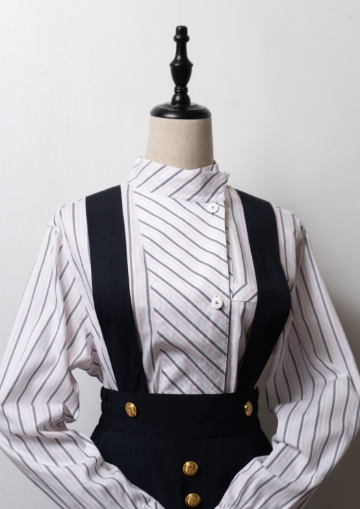 80's Tuck Design Pink × Black Bicolor Blouse