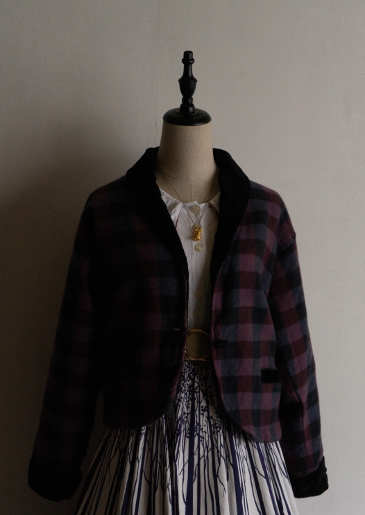 80's Red × Blue Check Pattern Velour Collar Jacket