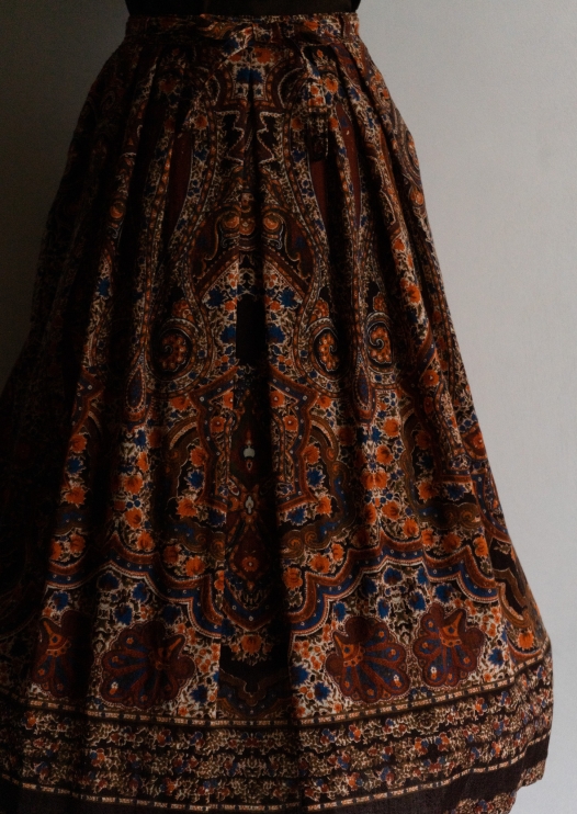 80's West Germany Orange × Blue Paisley Pattern Skirt