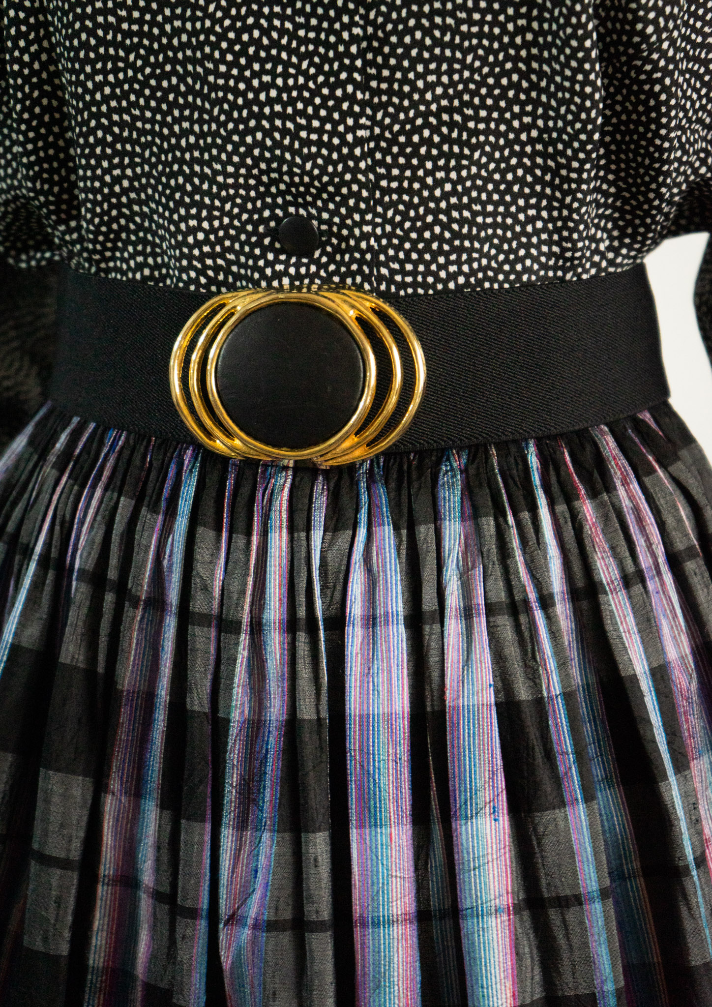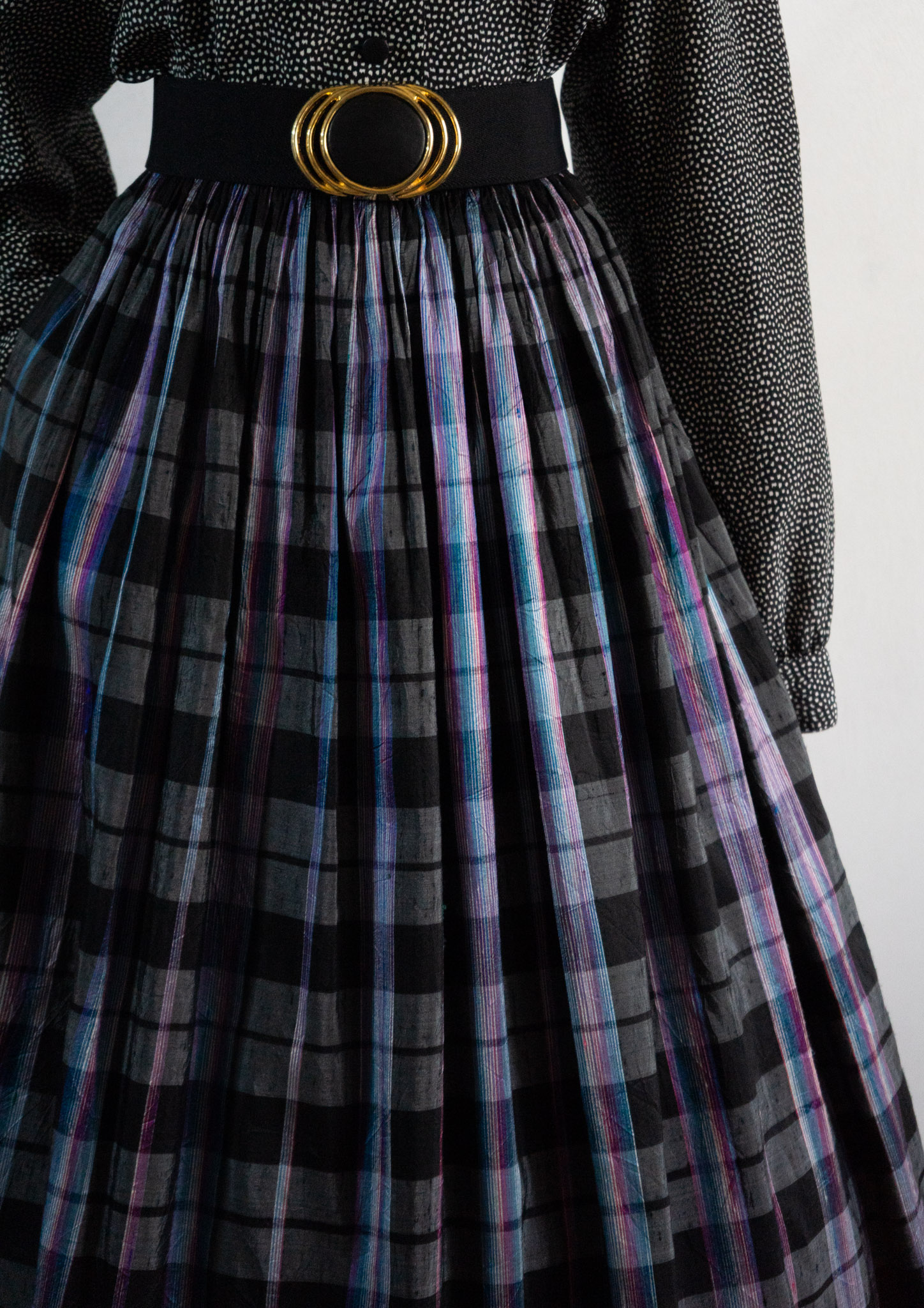 90's Euro Purple × Black Check Pattern Tyrol Skirt