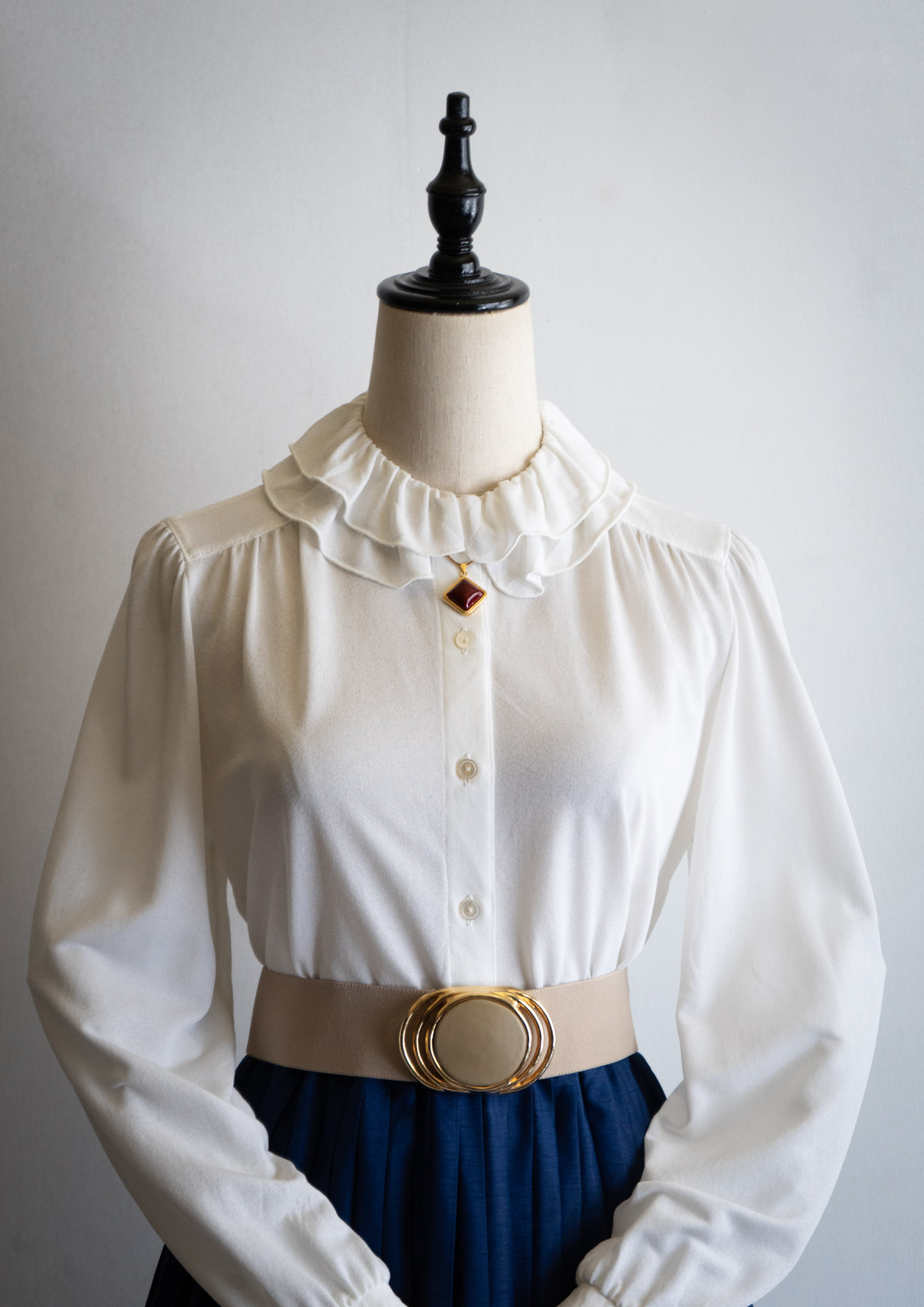 80's Tree Ring Pattern Frill Collar Purple Blouse