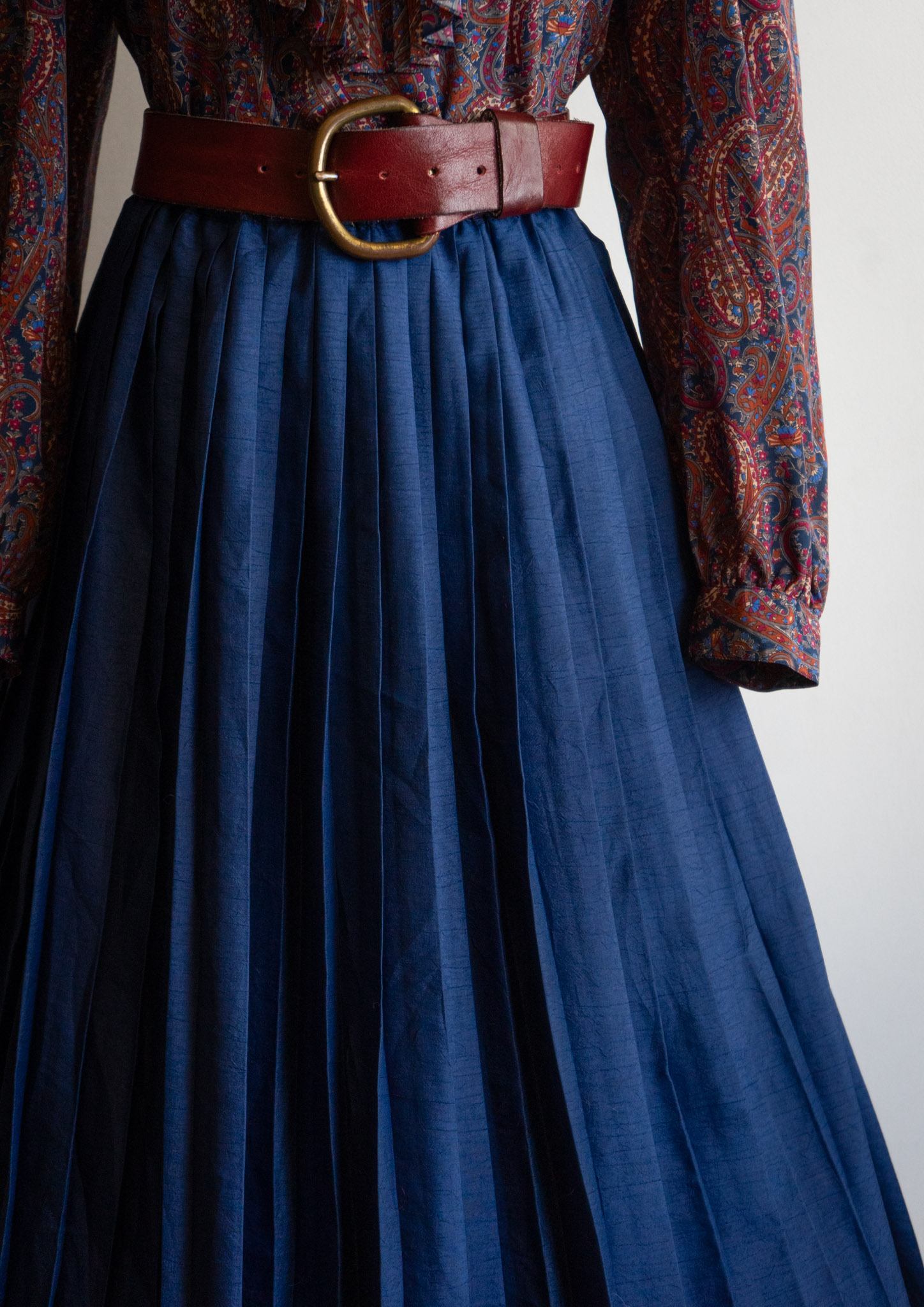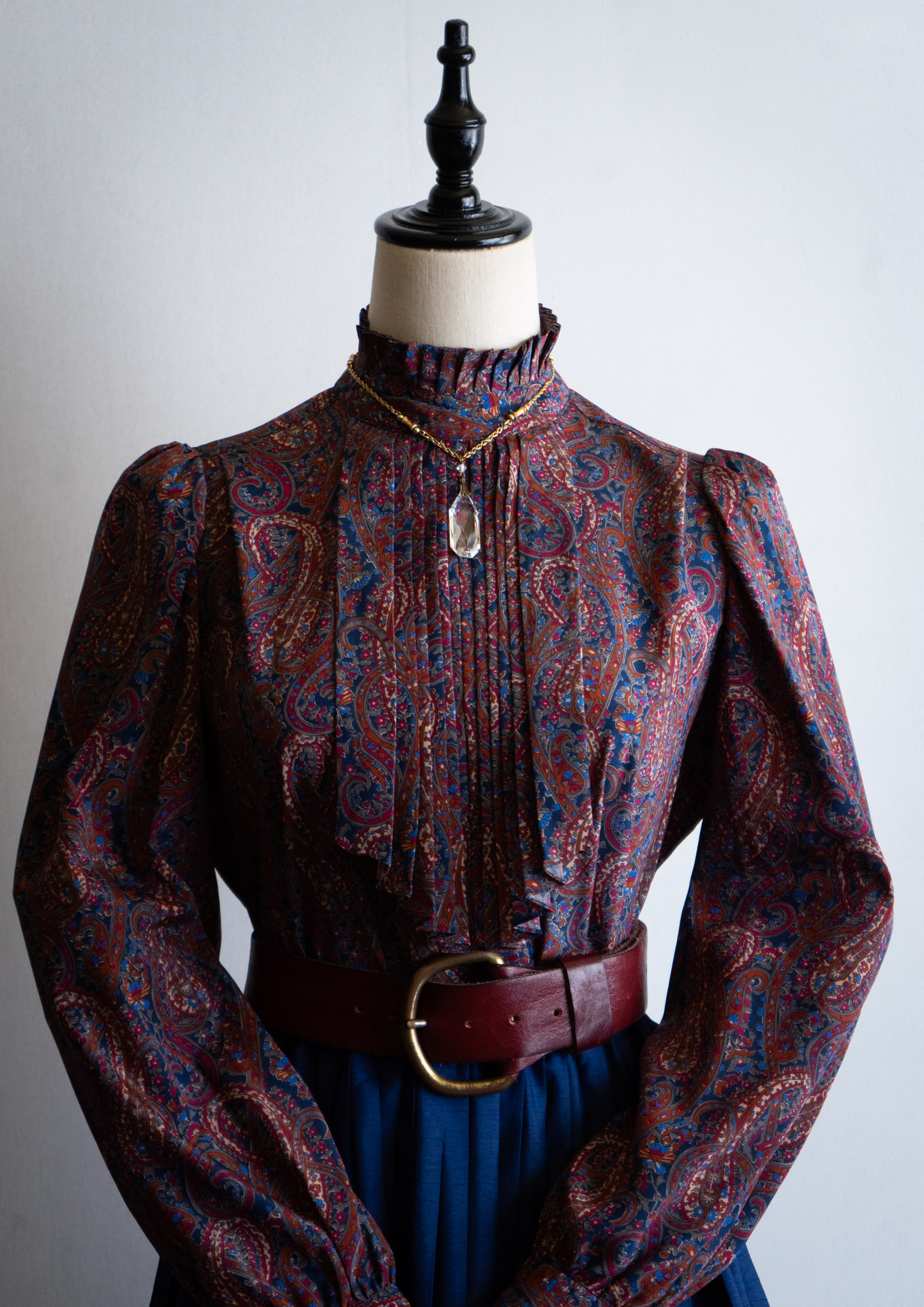 80's Pleats Jabot Collar Paisley Pattern Blouse