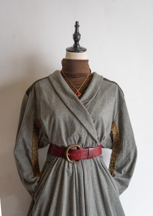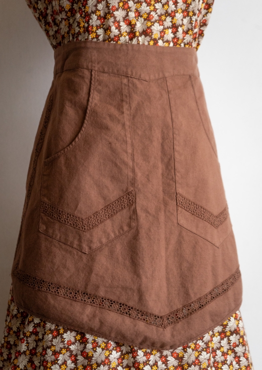 70~80's Leaf × Flower Pattern Brown Maxi Dress