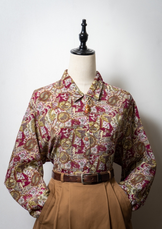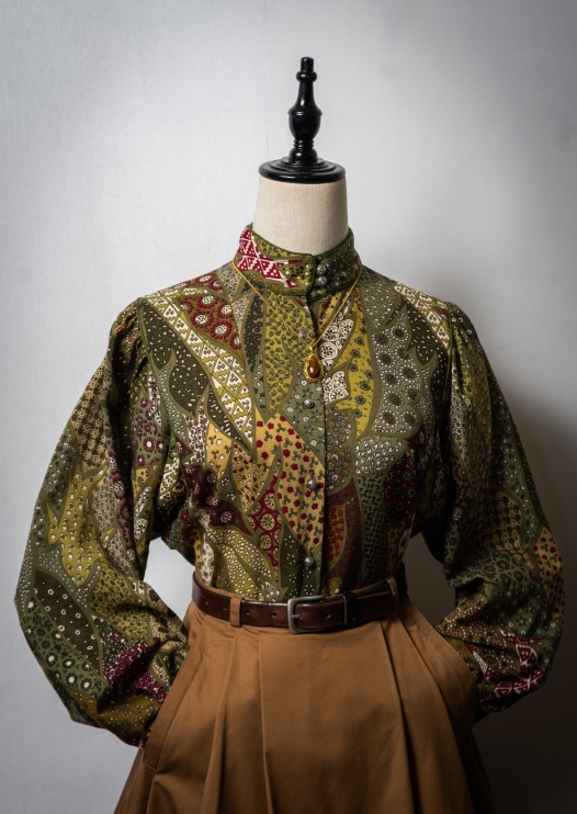 80~90's Euro Multi Botanical Like Motif Art Pattern Green Blouse
