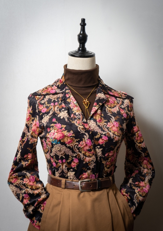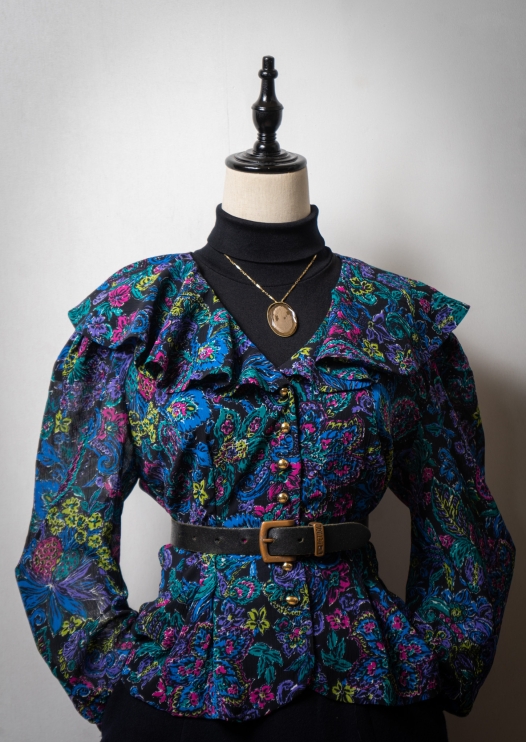 80~90's LESLIE FAY Peplum Design Colorful Botanical Pattern Blouse