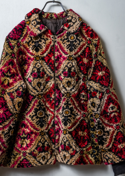 80's Double Pocket Design Botanical Crazy Glossy Pattern Jacket