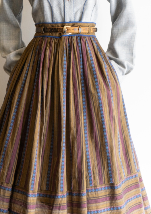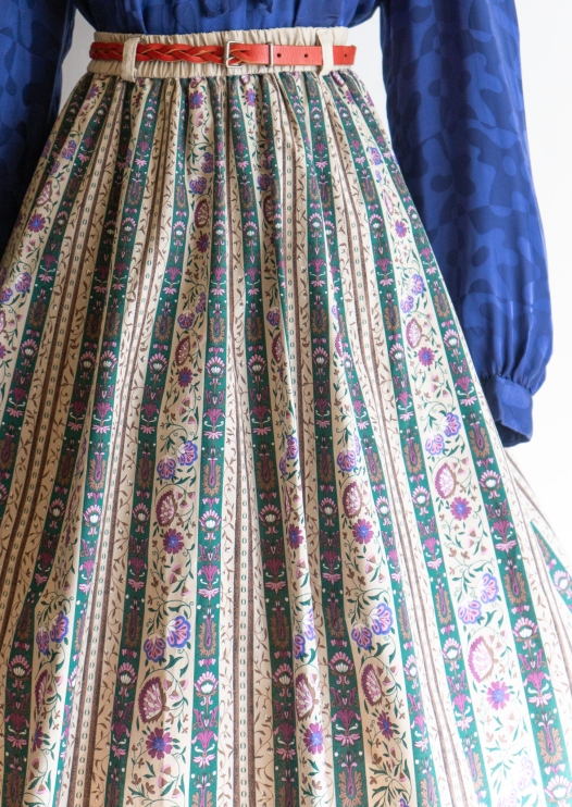 90's Germany Ivory × Green Flower Stripe Pattern Tyrol Skirt