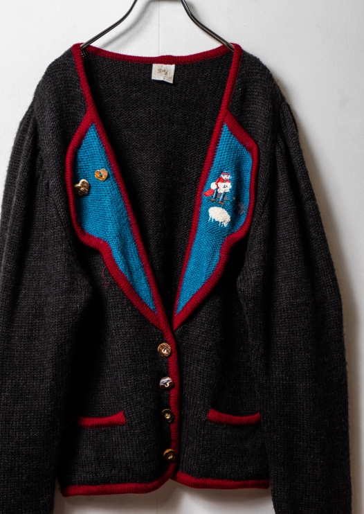 80's Austria Double Pocket × Sheep Embroidery Design Tyrol Cardigan