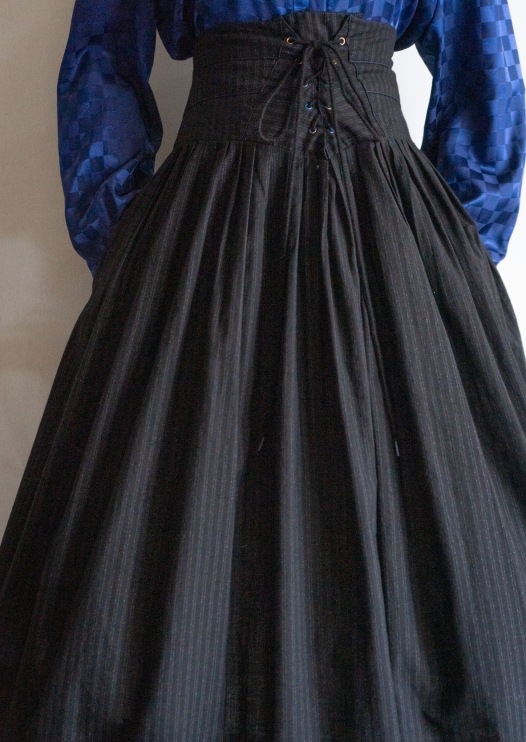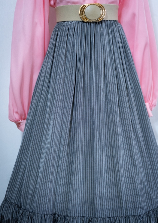 80's Euro Lace up Design Stripe Pattern Black Over dye Skirt