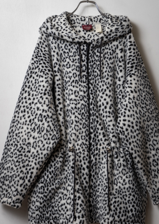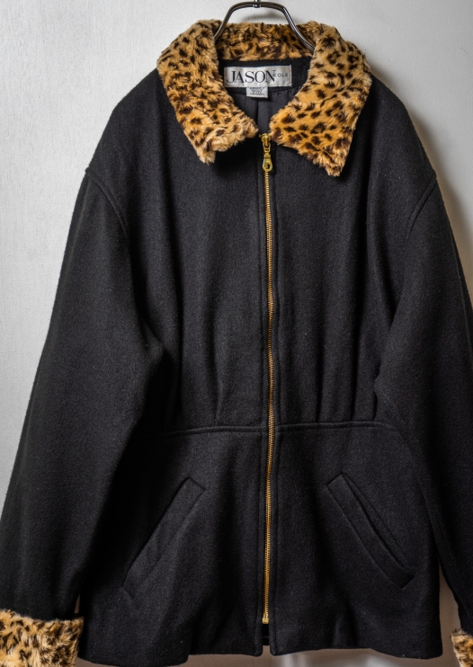 80's Double Pocket Design Point Leopard Pattern Black Wool Jacket