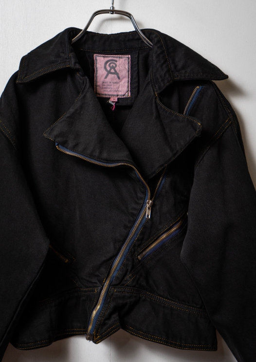 80's Double Pocket × Zip Design Black Denim Short Jacket