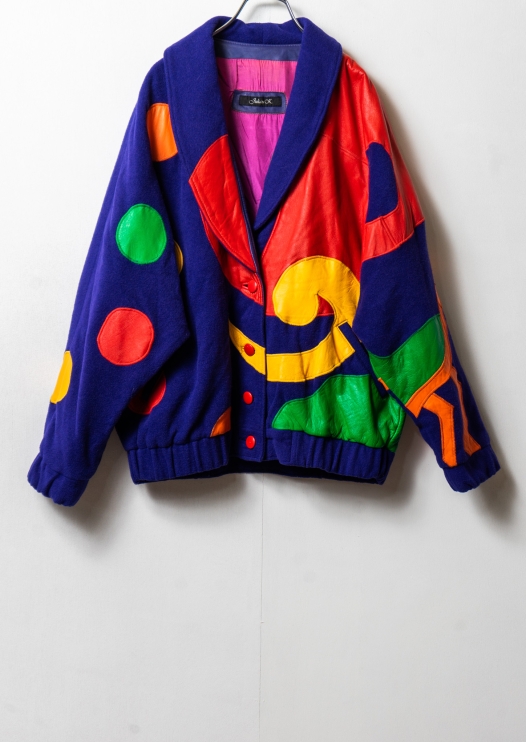 80's Double Pocket Design Colorful Unique Art Pattern Purple Jacket