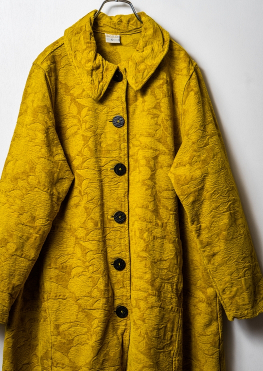 80's USA Double Pocket Design Botanical Jacquard Like Pattern Mustard Coat