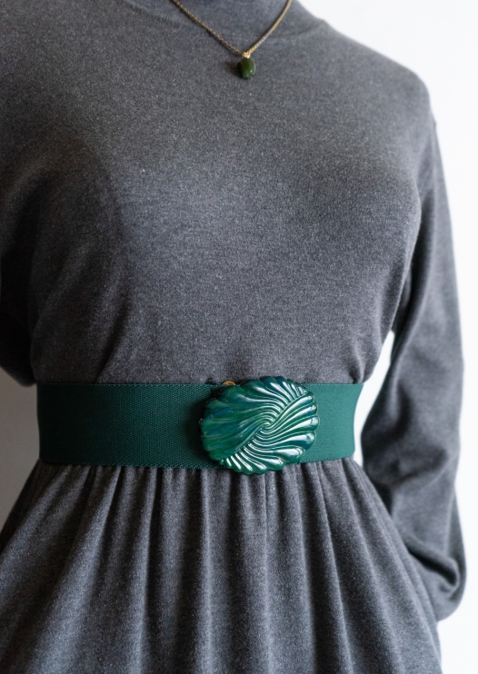 80's Gold × Light Beige Oval Buckle Rubber Belt