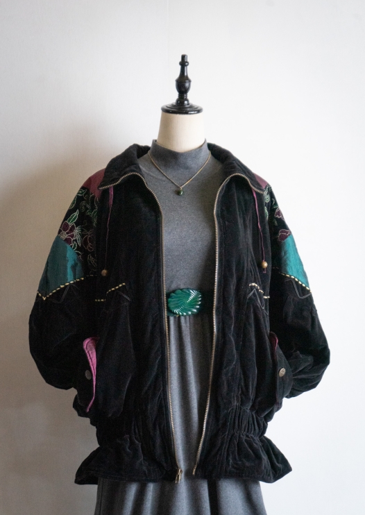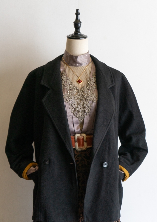 80's Euro Mustard Color Linning Black Wool Tailored Jacket