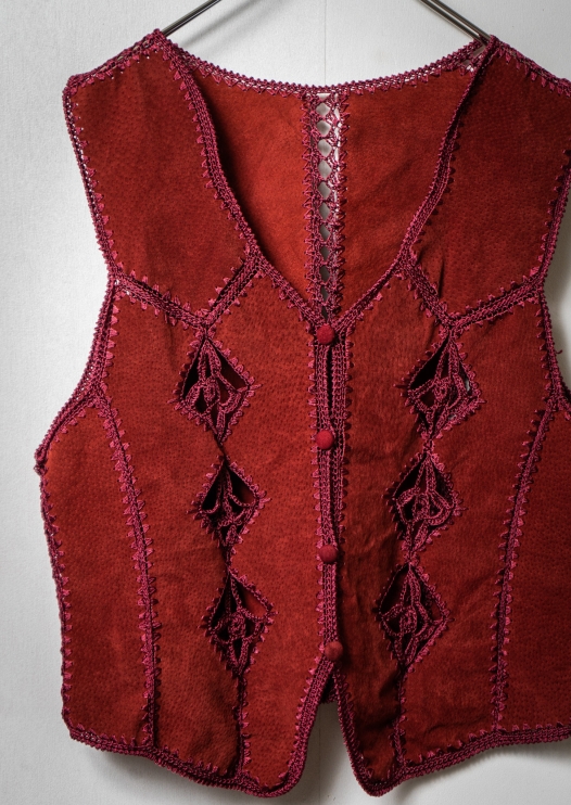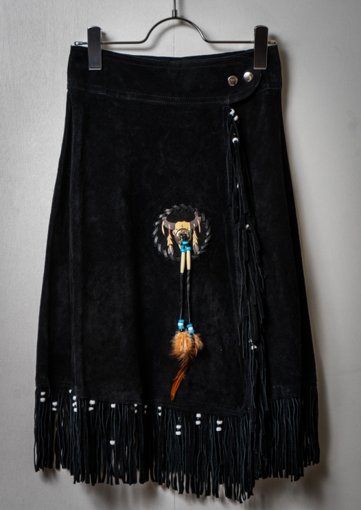 90's Fringe × Indian Like Charm Design Black Suede Skirt