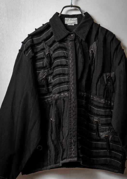 80~90's Tassel Like Design Unique Pattern Black Denim Jacket