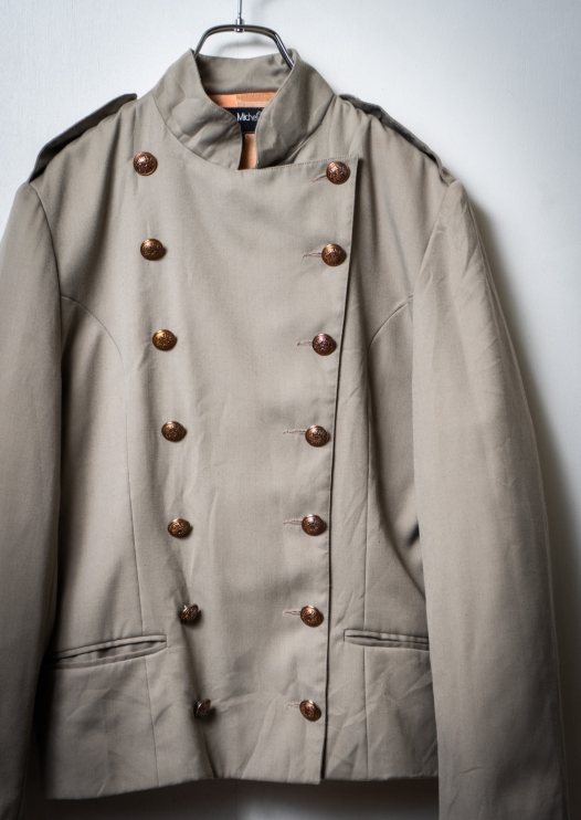80's France Double Button × Double Pocket Design Olive Gray Napoleon Jacket