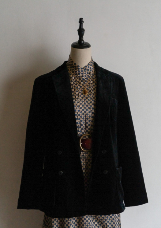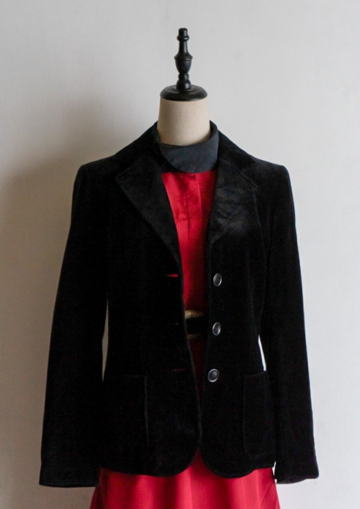 80's Red × Blue Check Pattern Velour Collar Jacket