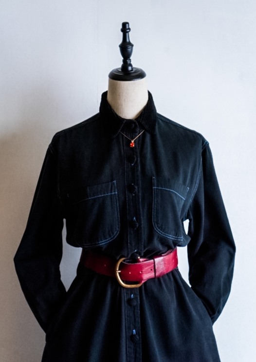 90's Blue Stitch Black Over dye Denim Shirts Dress
