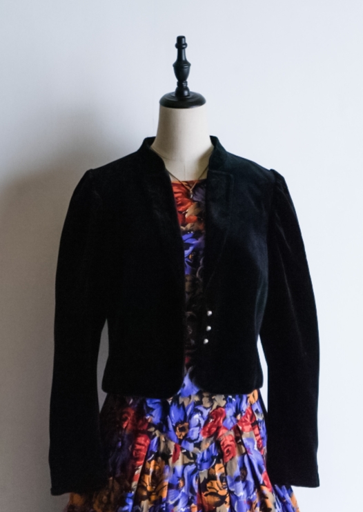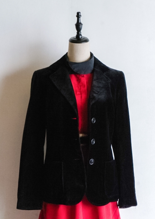 80's Red × Blue Check Pattern Velour Collar Jacket