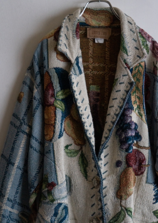 80's USA Fruits Art Pattern Light Blue Rug Jacket