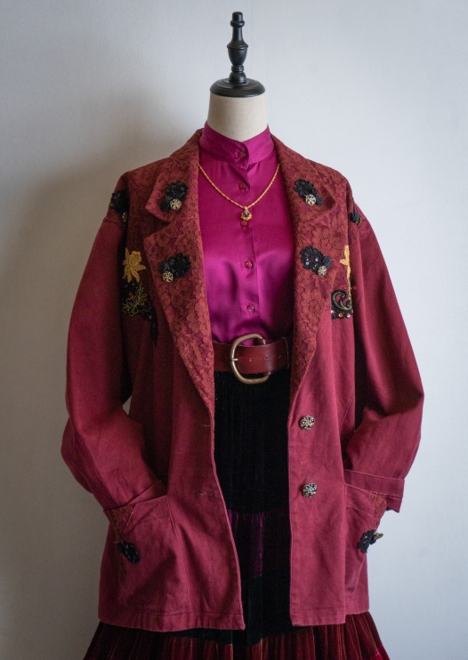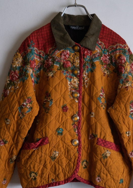 80~90's Carole Little Faux Suede Collar Flower Pattern Quilting Jacket