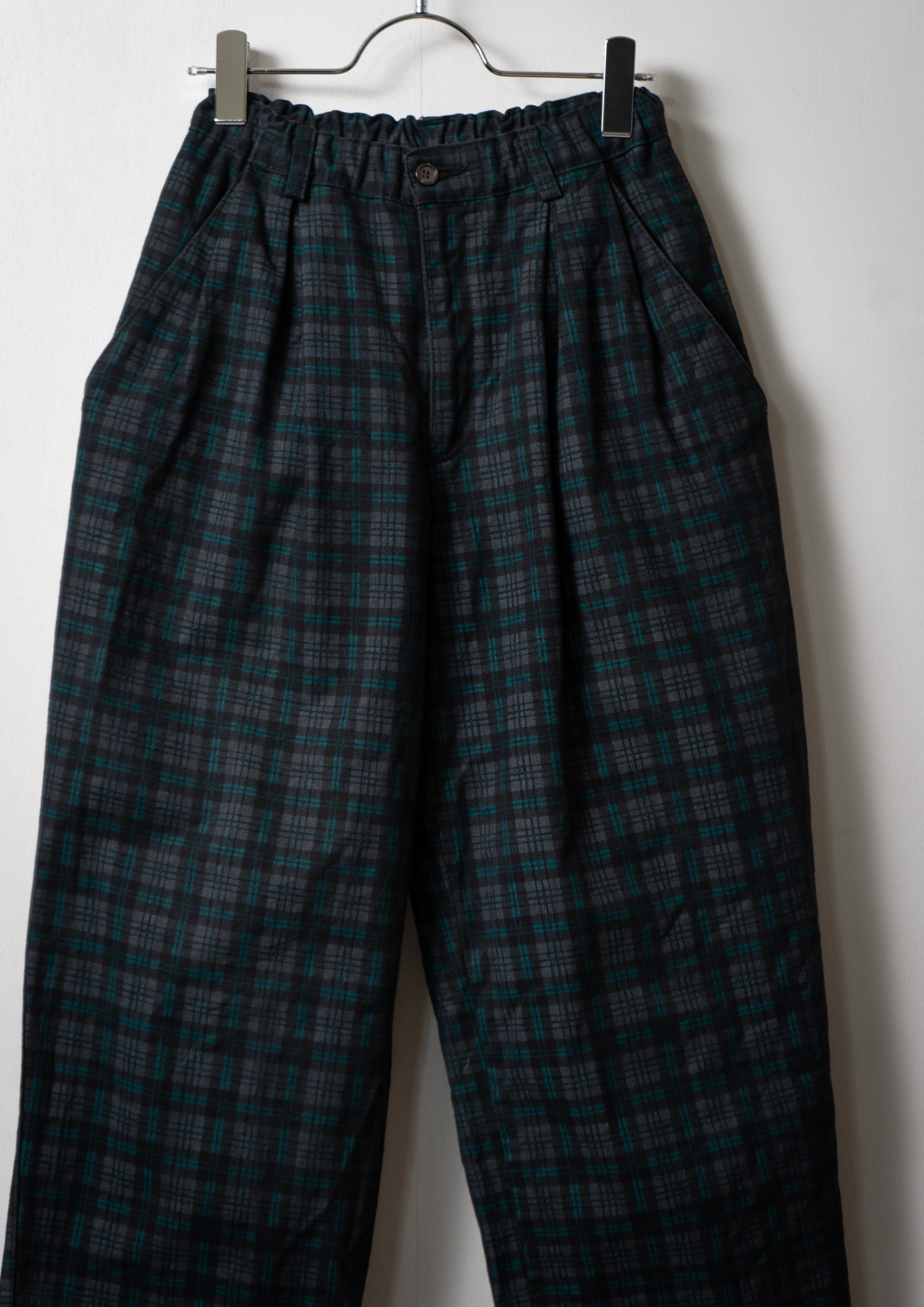 80's France Tartan Check Pattern Wool Mixed Tuck Pants