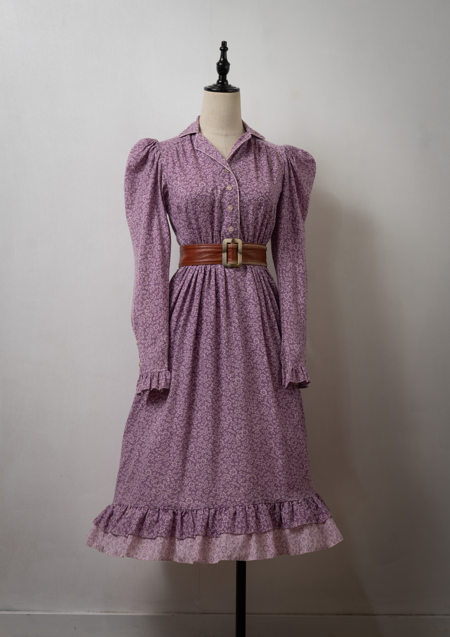 70’s USA Small Flower Pattern Puff Sleeve Lavender Dress