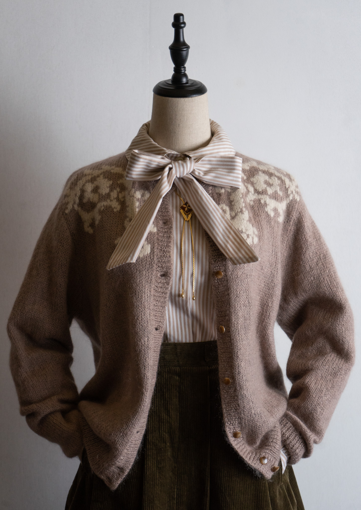 90's Botanical Pattern Latte Collar Mohair Blend Cardigan