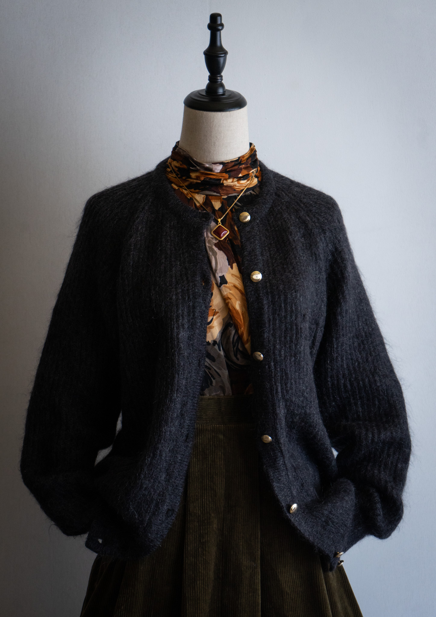 80~90's Italy Mohair Blend Black Kint Cardigan