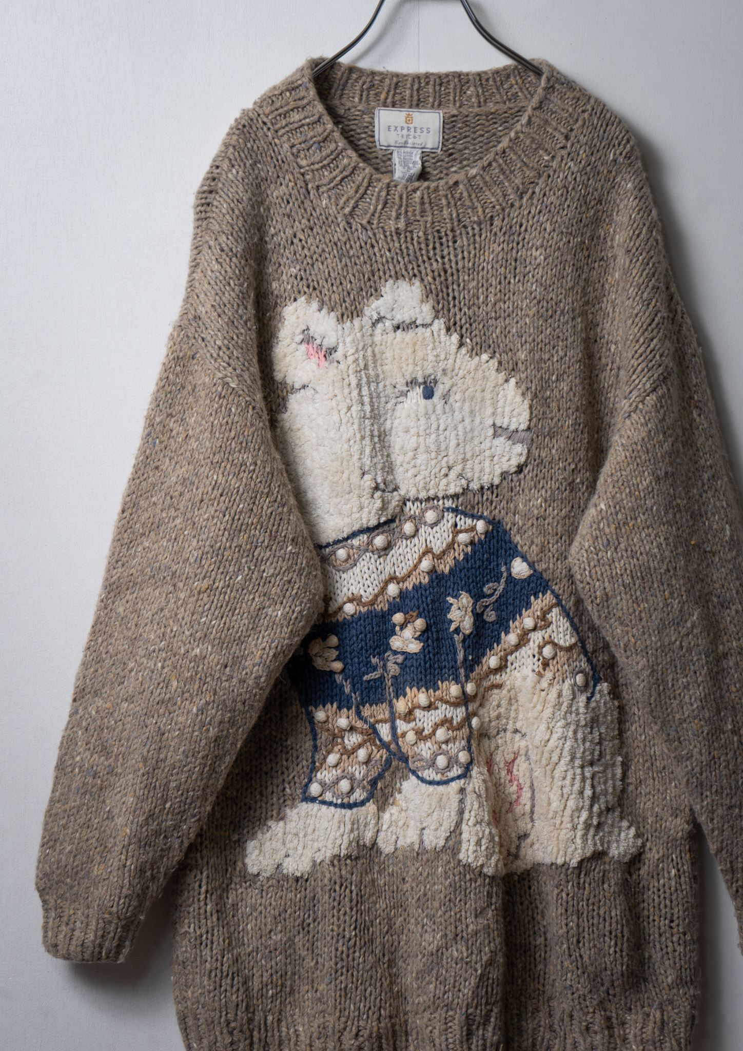 90's 3D Dog Design Color Nep Pattern Knit Sweater