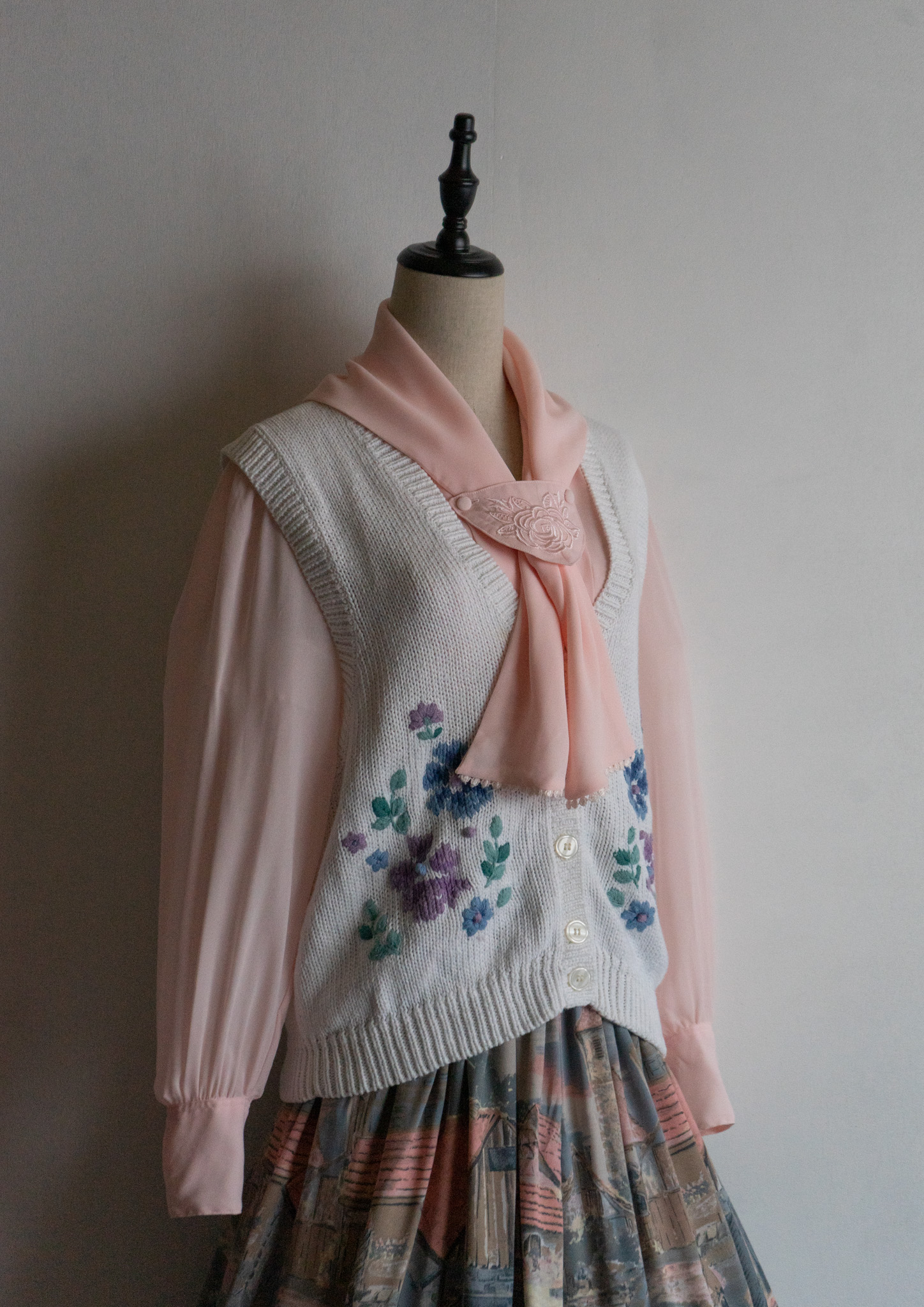 90's Botanical Pattern Latte Collar Mohair Blend Cardigan