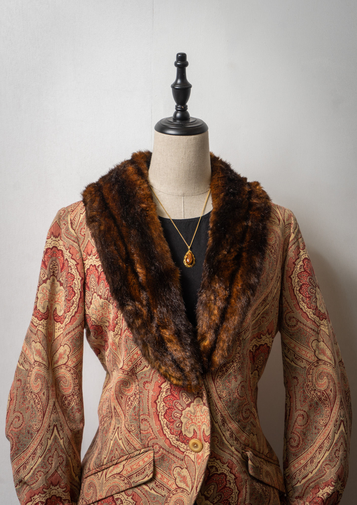 LAUREN Fur Design Paisley Pattern Double Pocket Gobelin Jacket