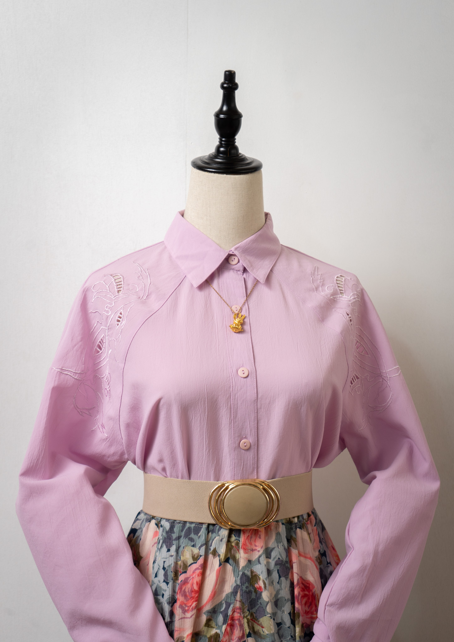 80's Botanical Cutwork Design Lavender Pink Blouse