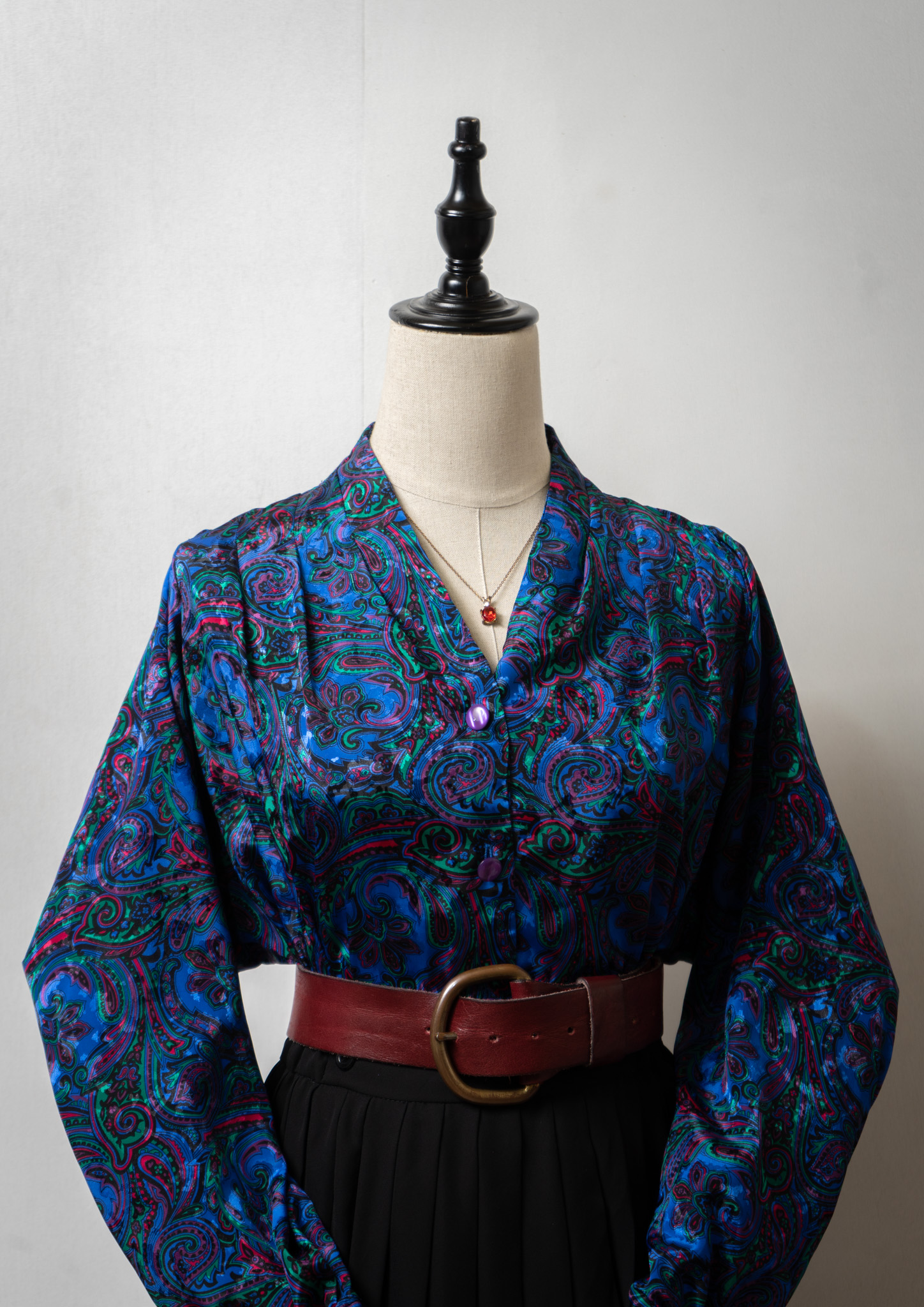 70~80's Triangle Dot Pattern Brown Peplum Like Blouse