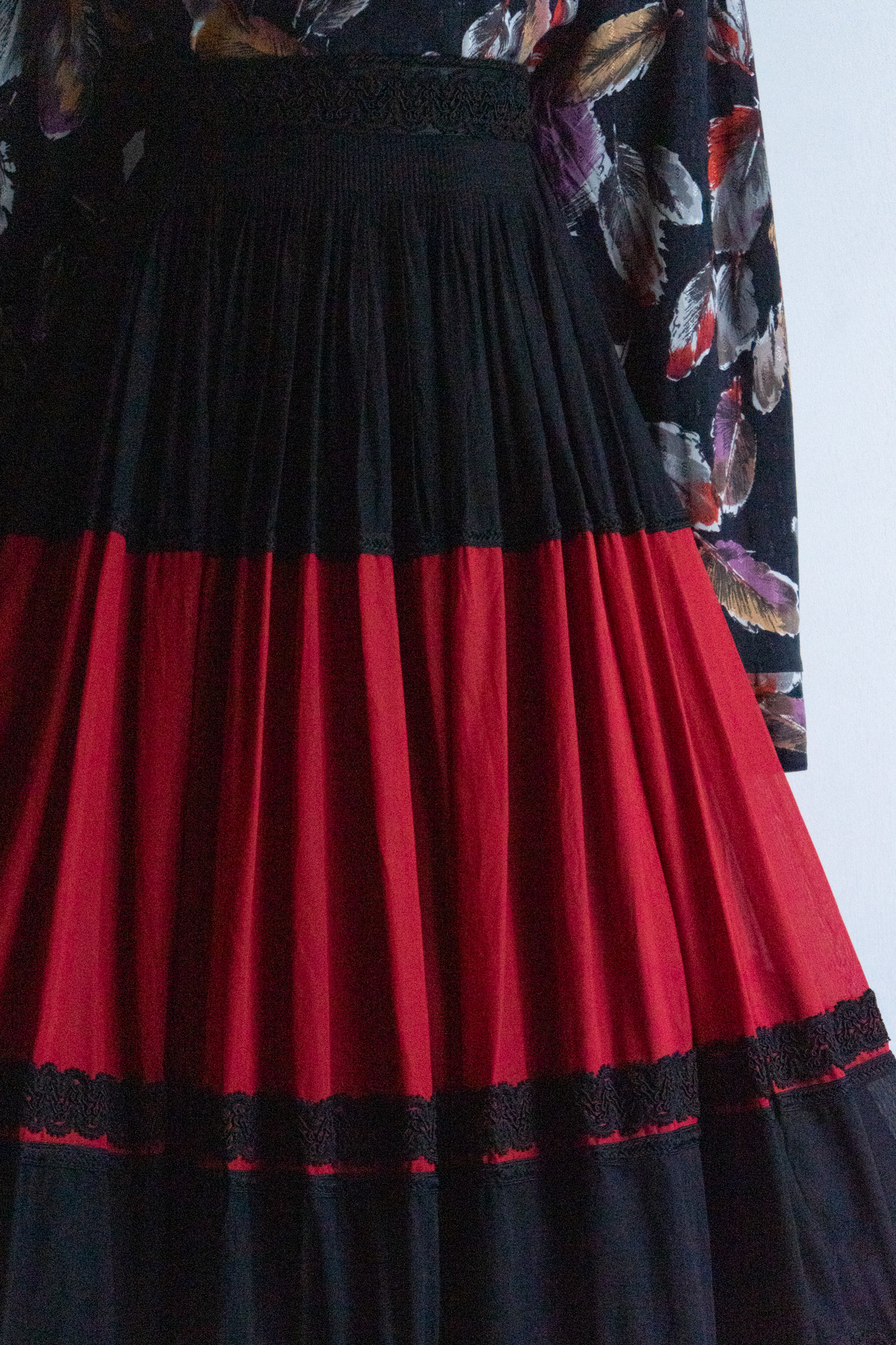 80's Point Lace Design Red × Black Skirt