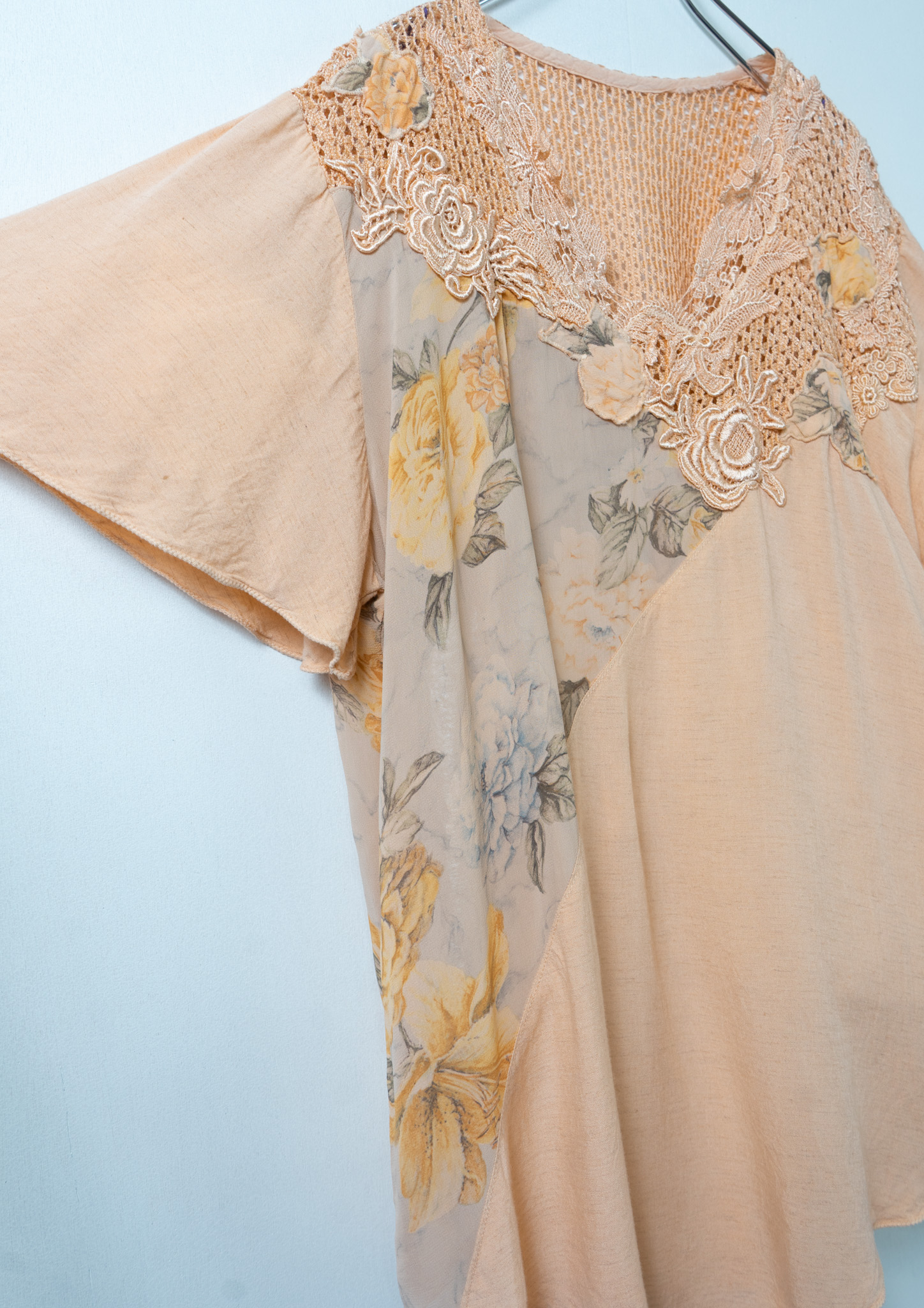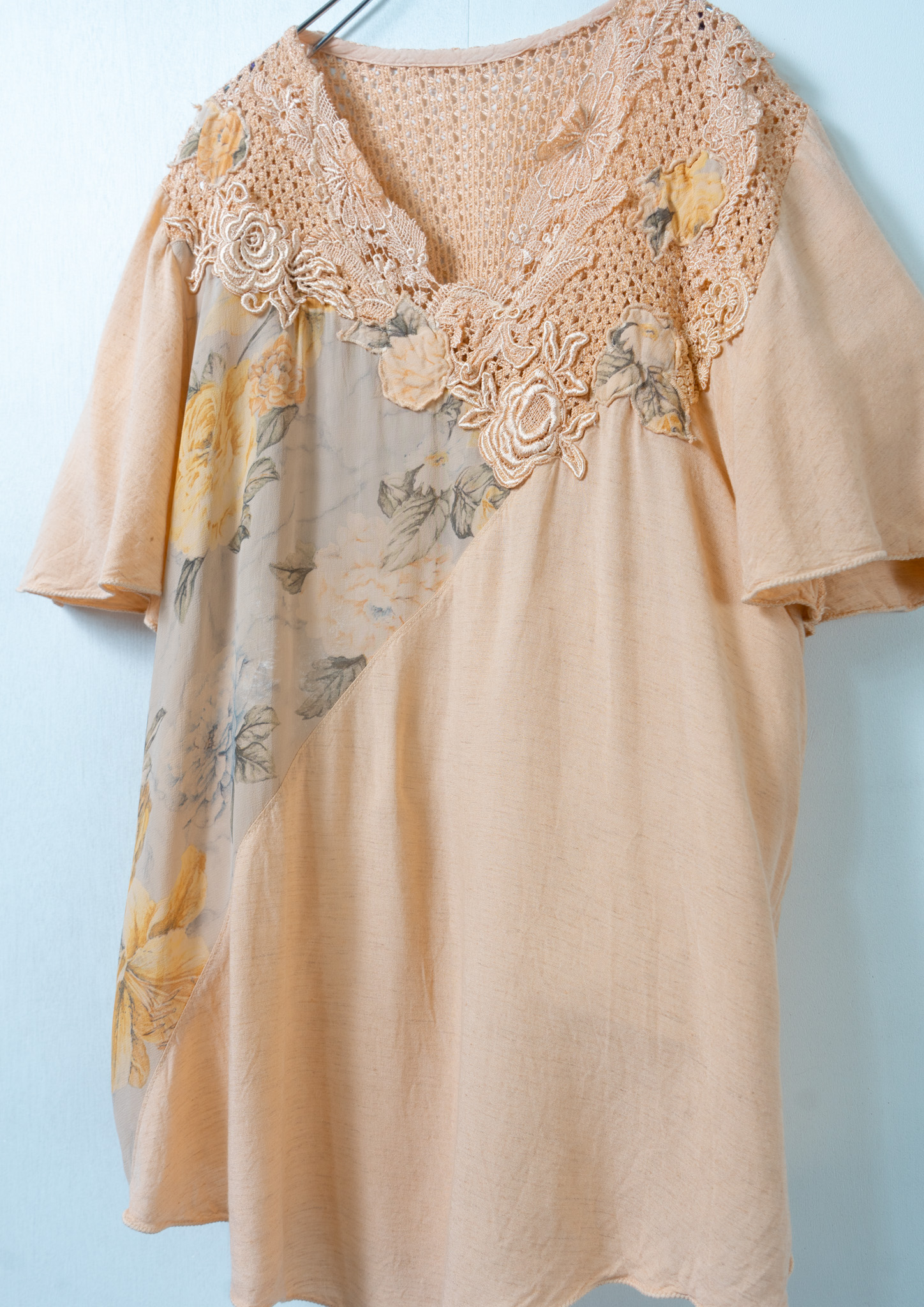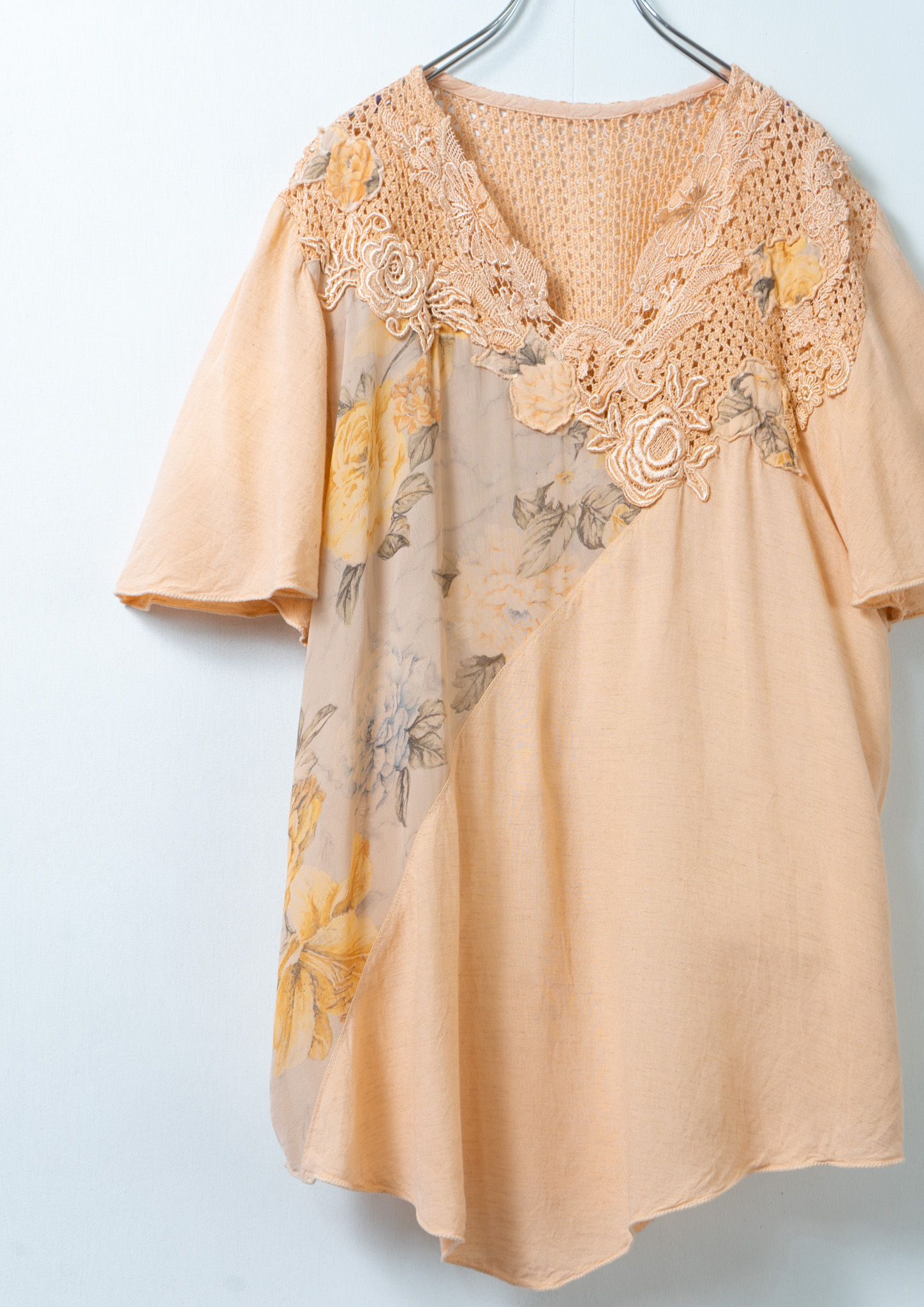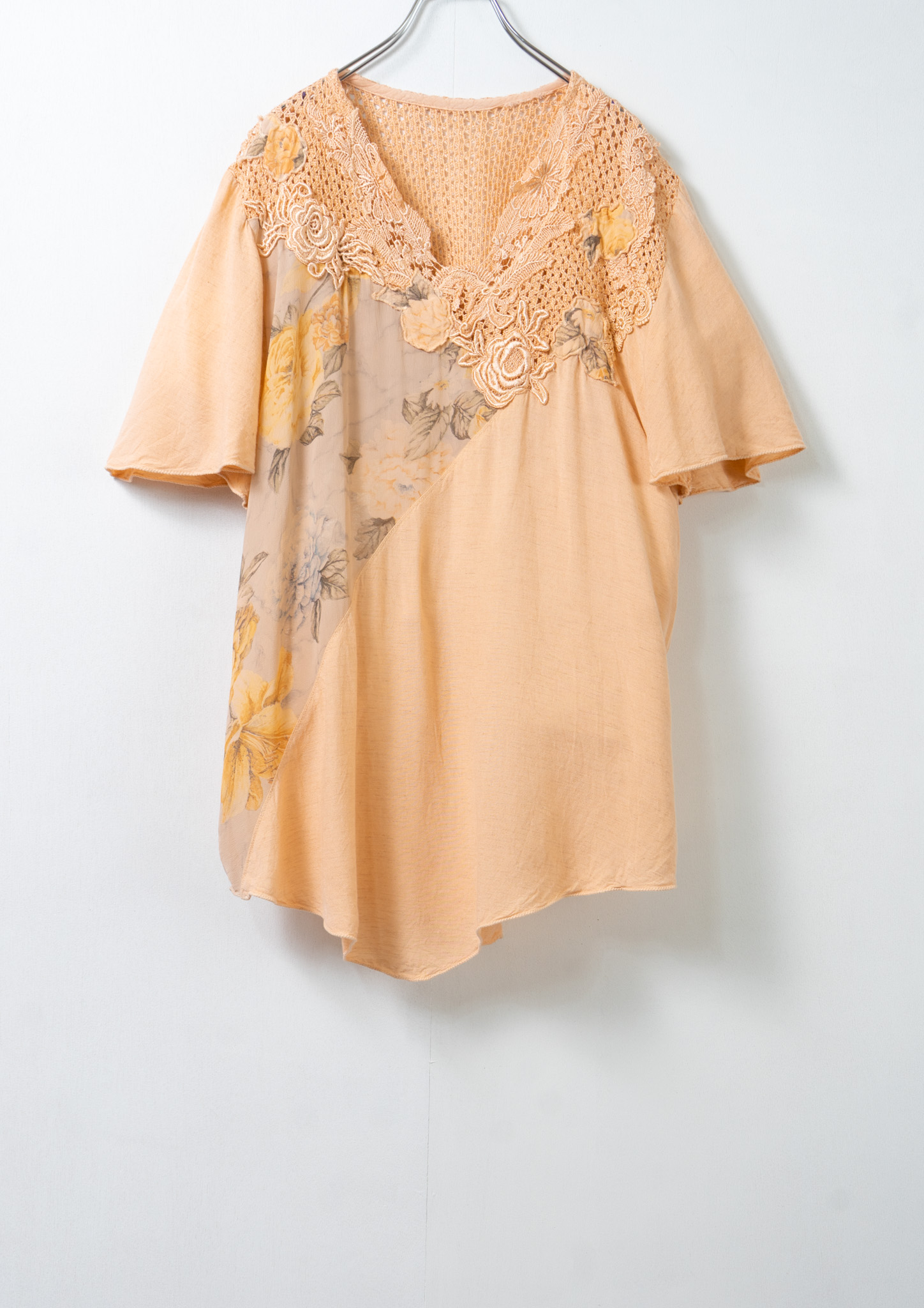 90's Flower Lace × Pattern Orange Tops