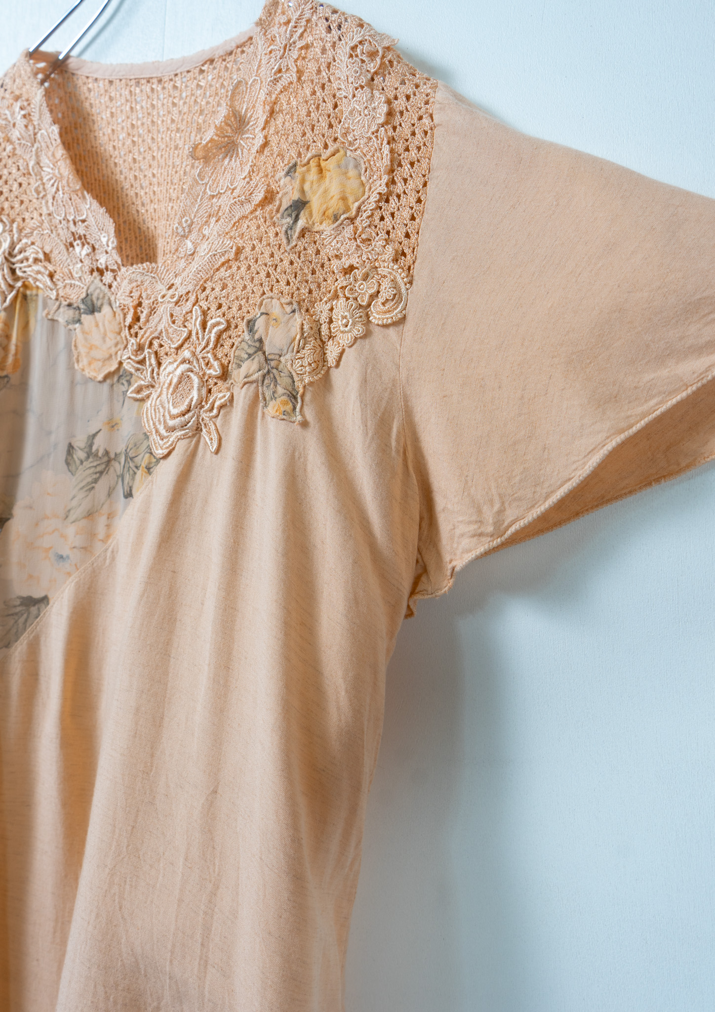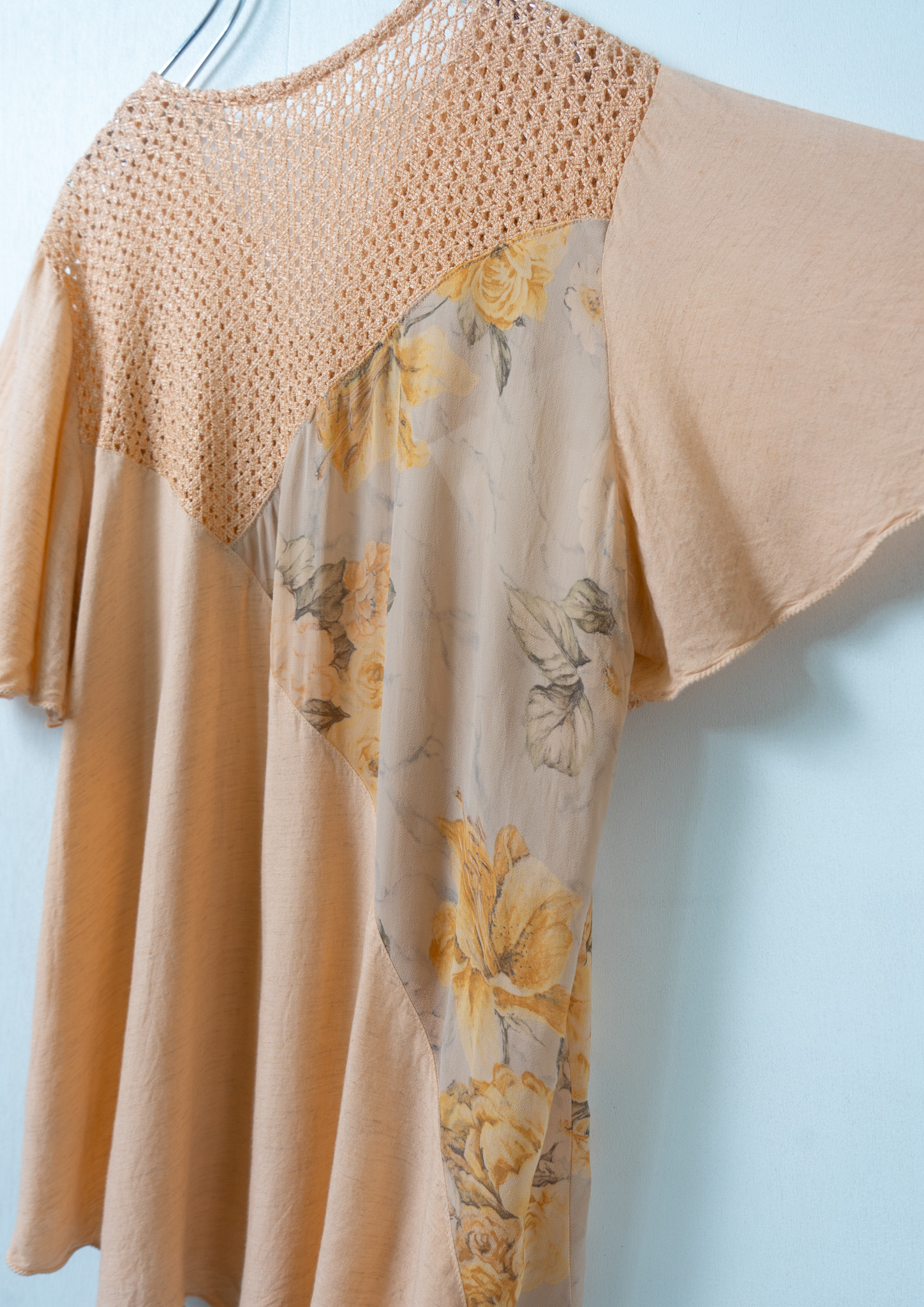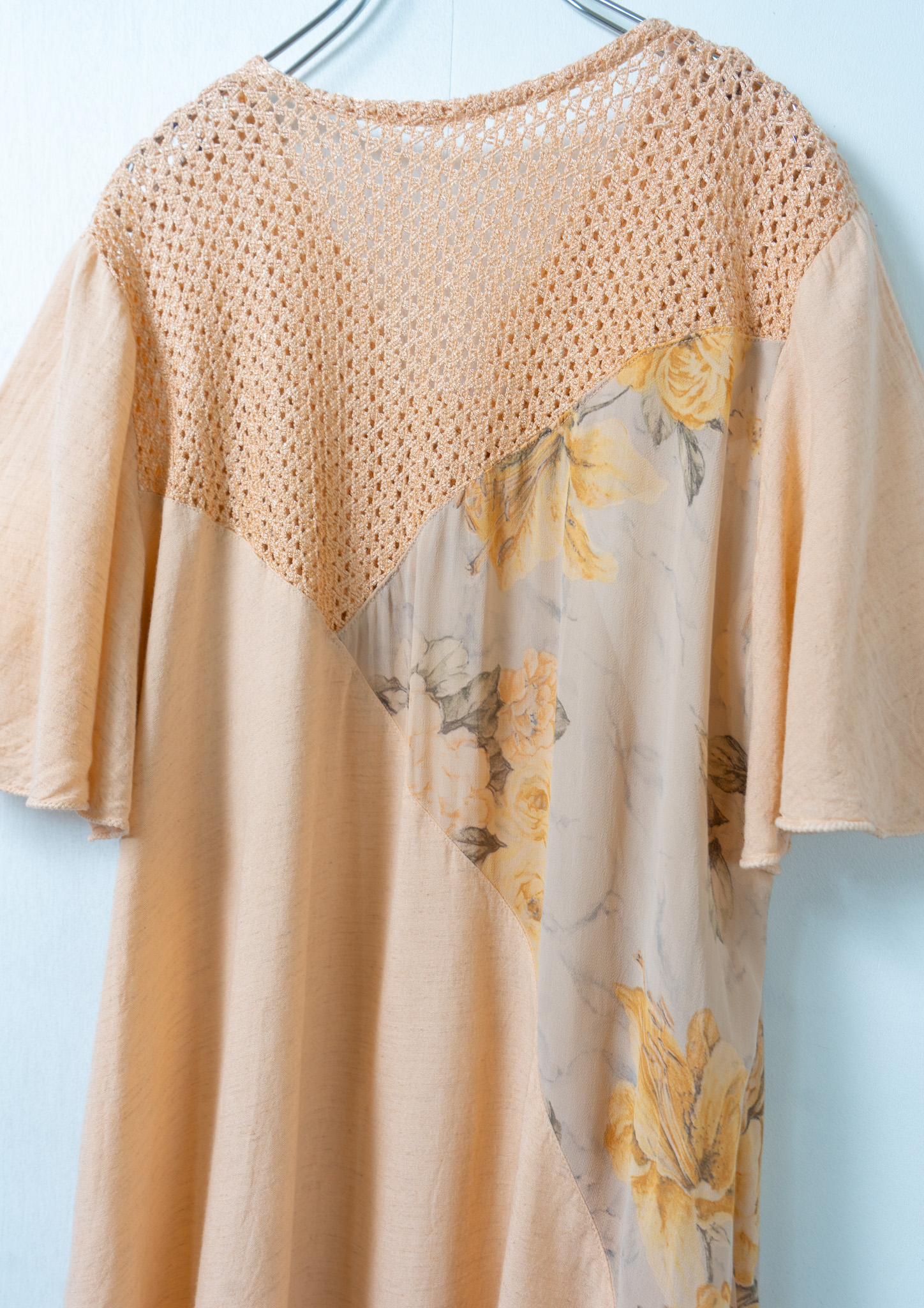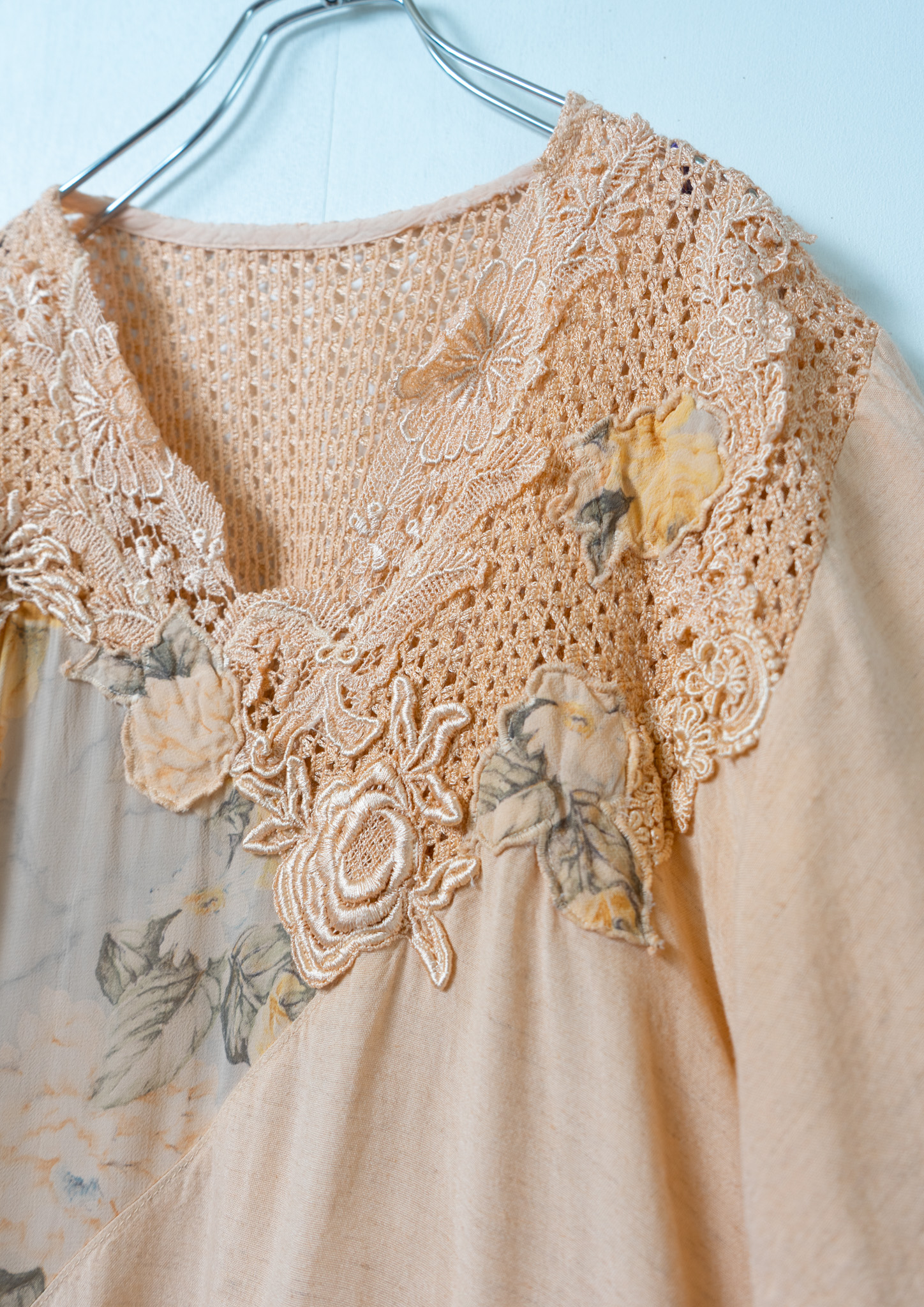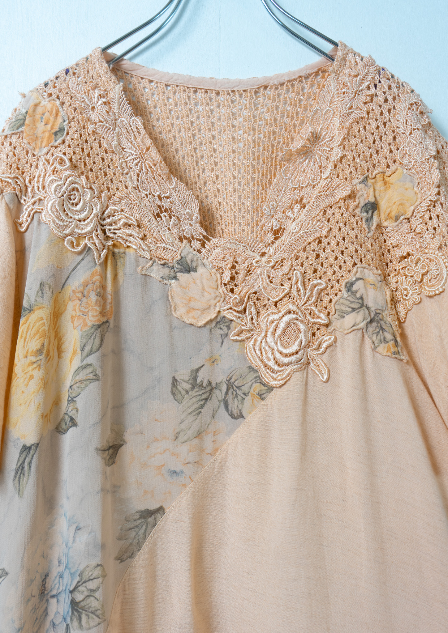 90's Flower Lace × Pattern Orange Tops
