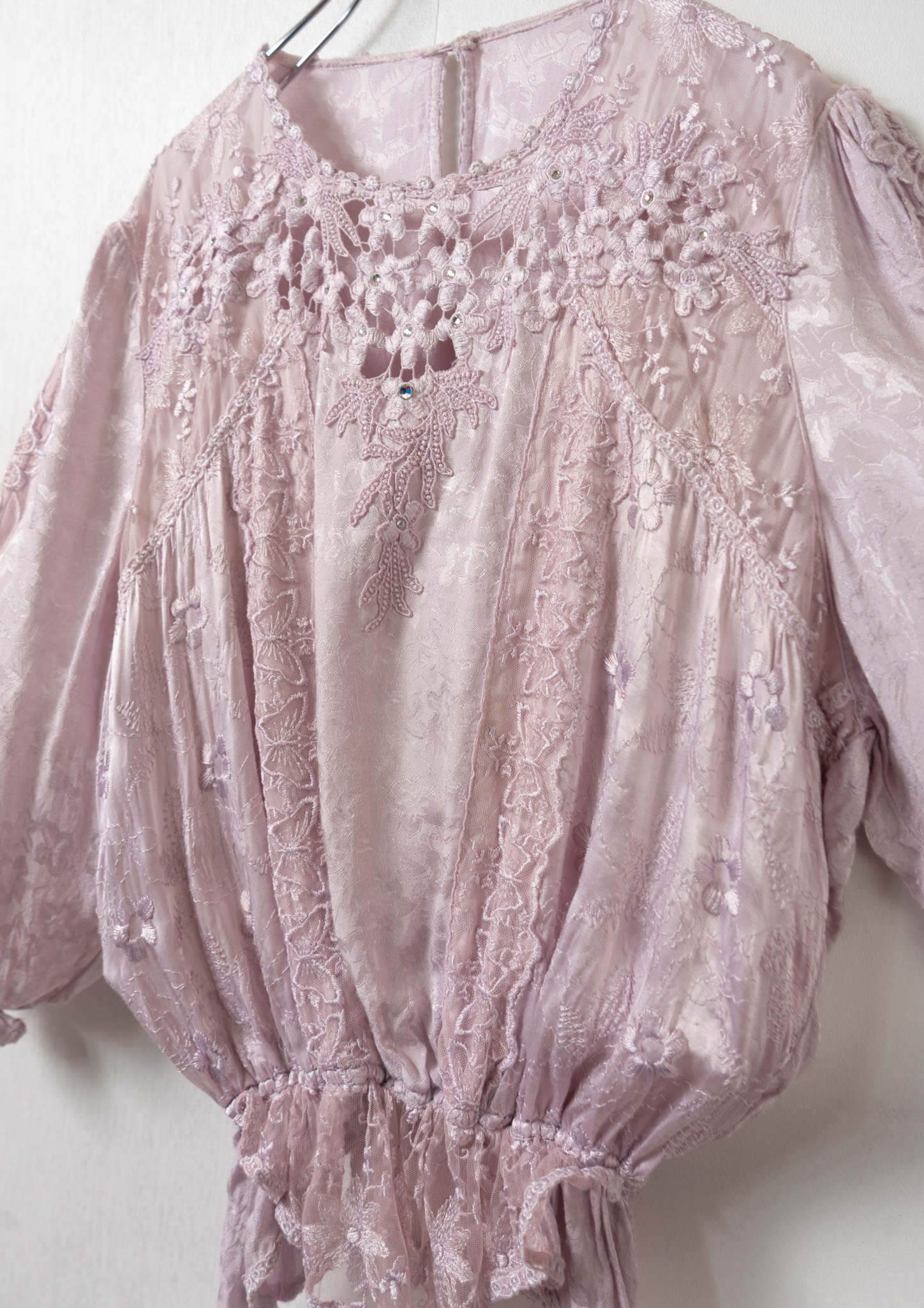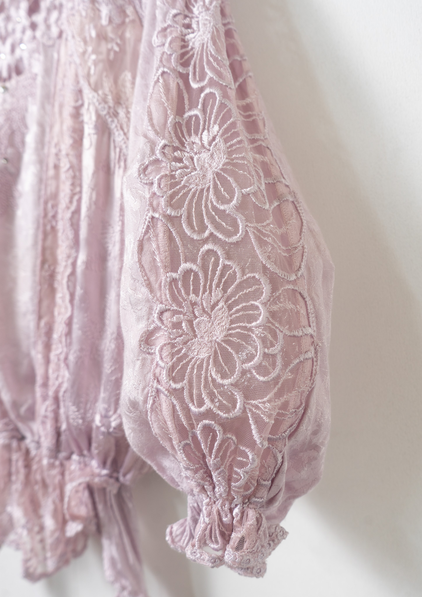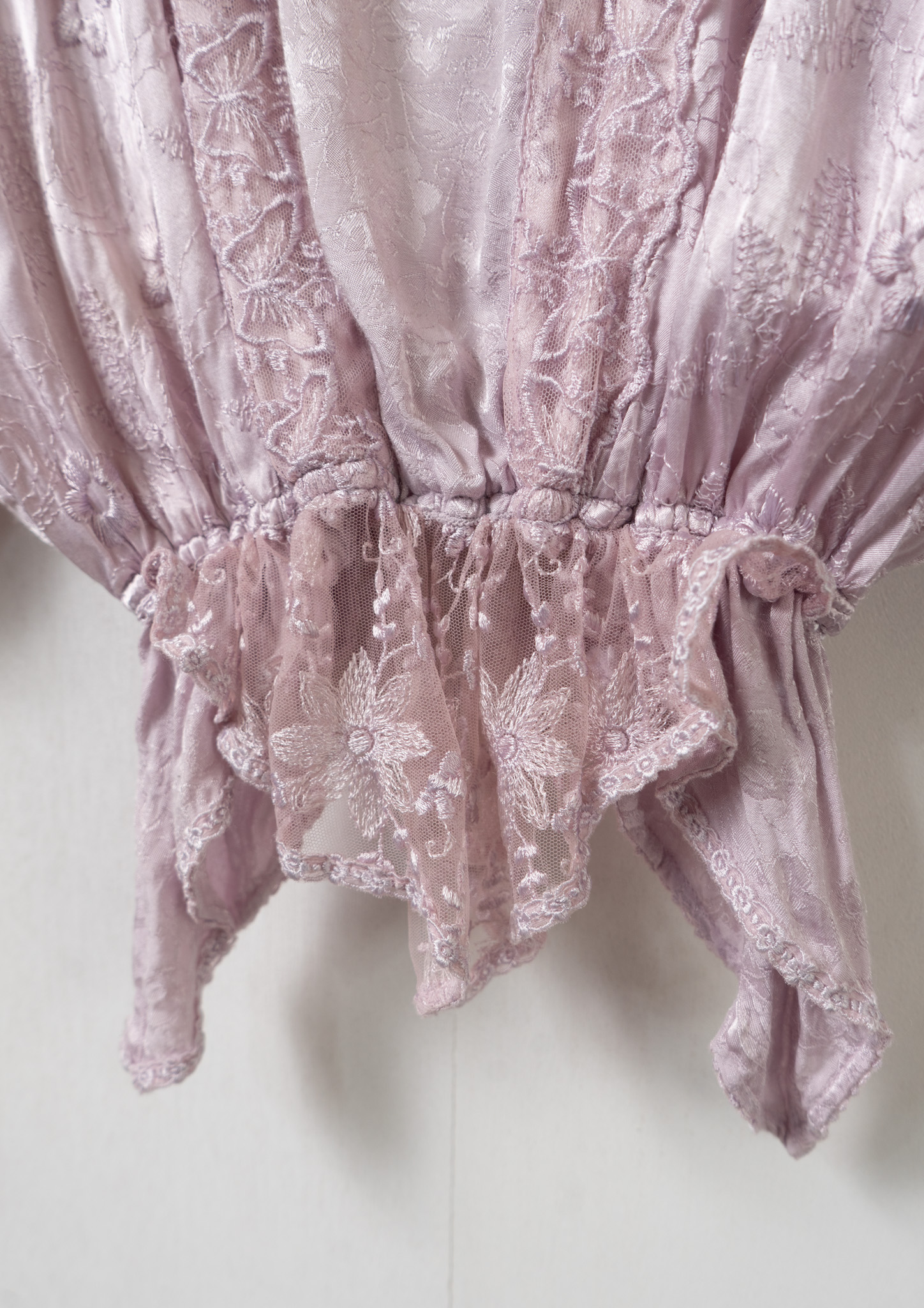 80's Flower Pattern × Lace Design Smoky Pink Tops