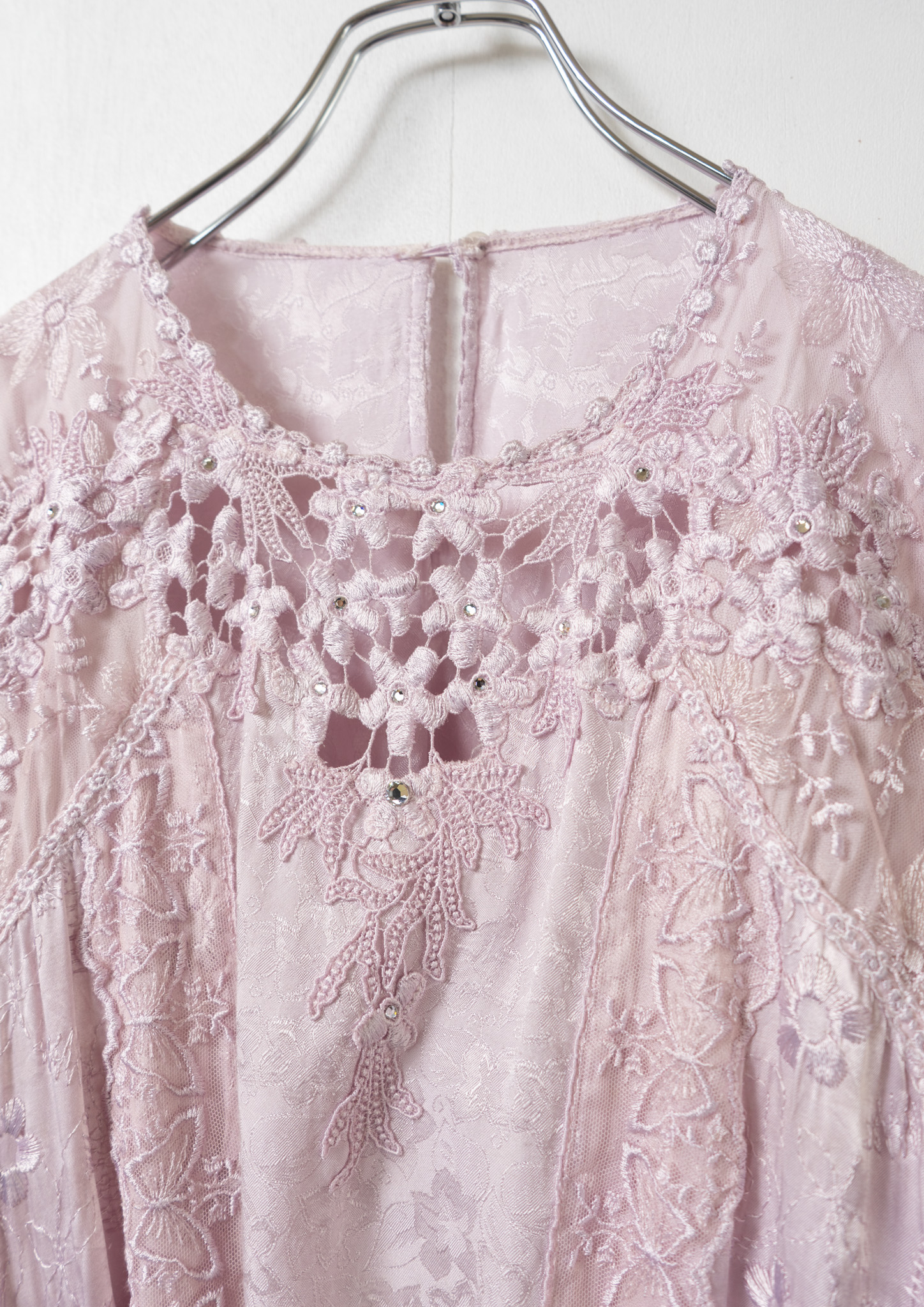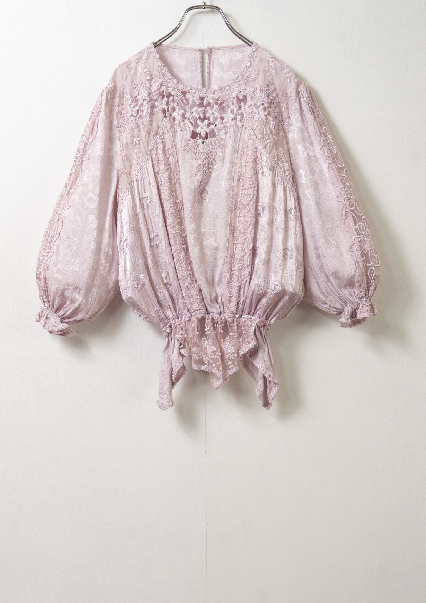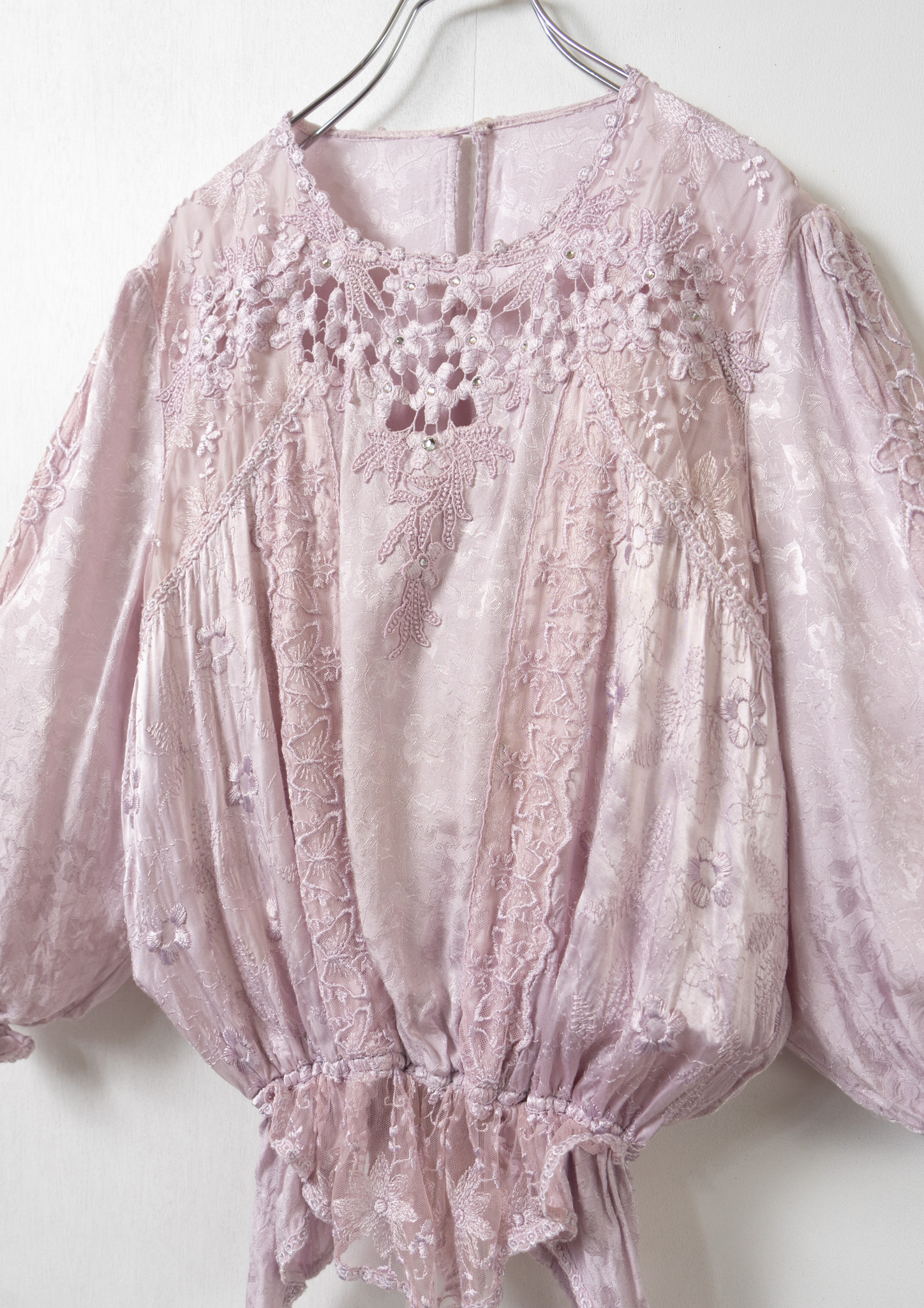 80's Flower Pattern × Lace Design Smoky Pink Tops