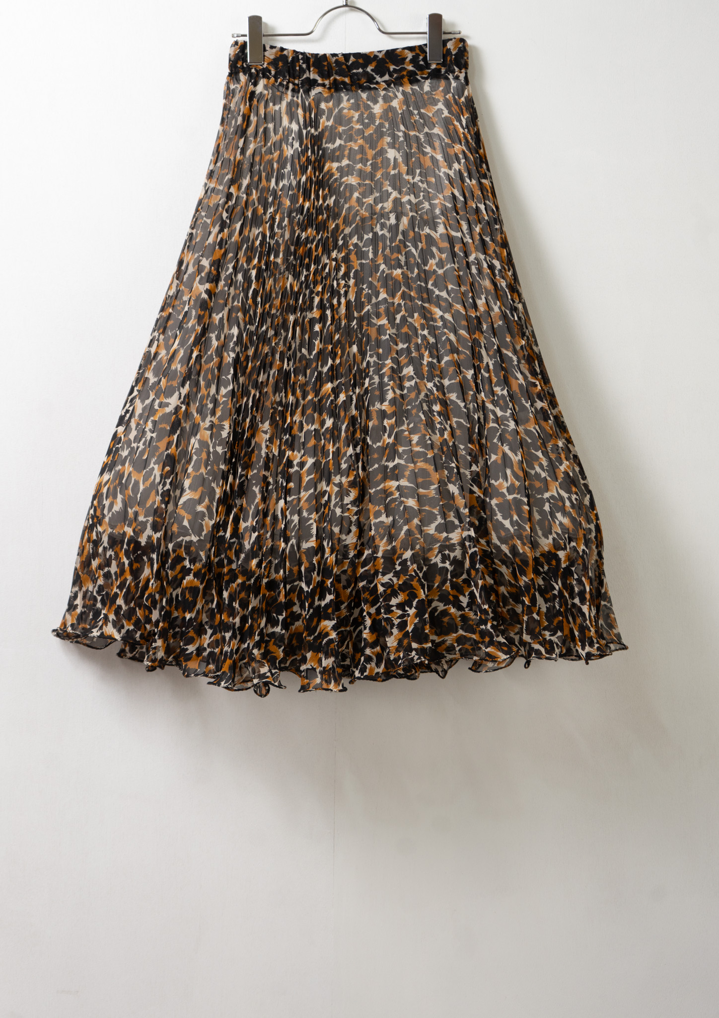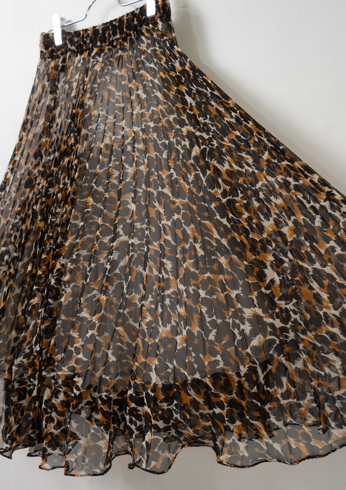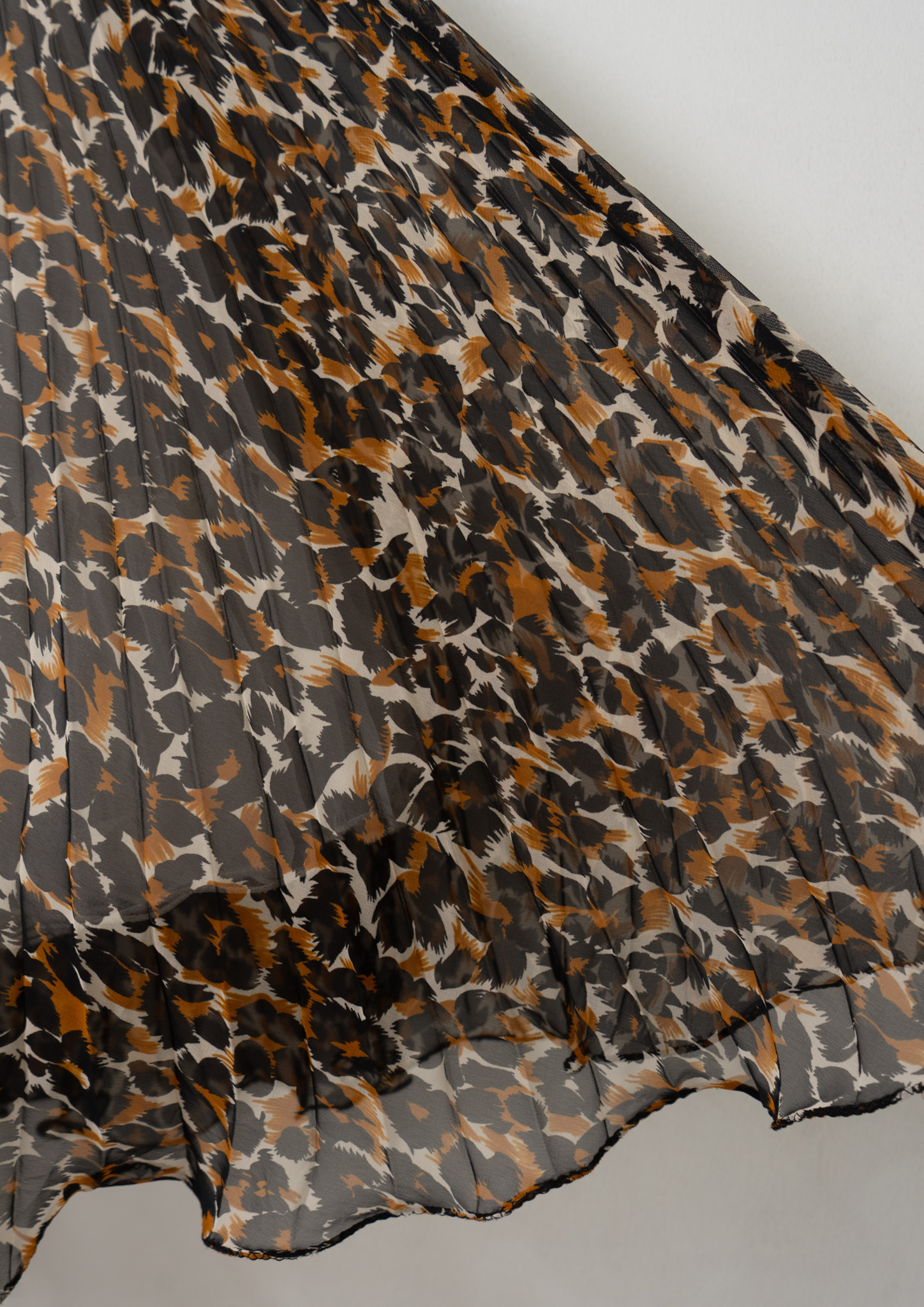 90's Leopard Pattern Sheer Pleats Skirt